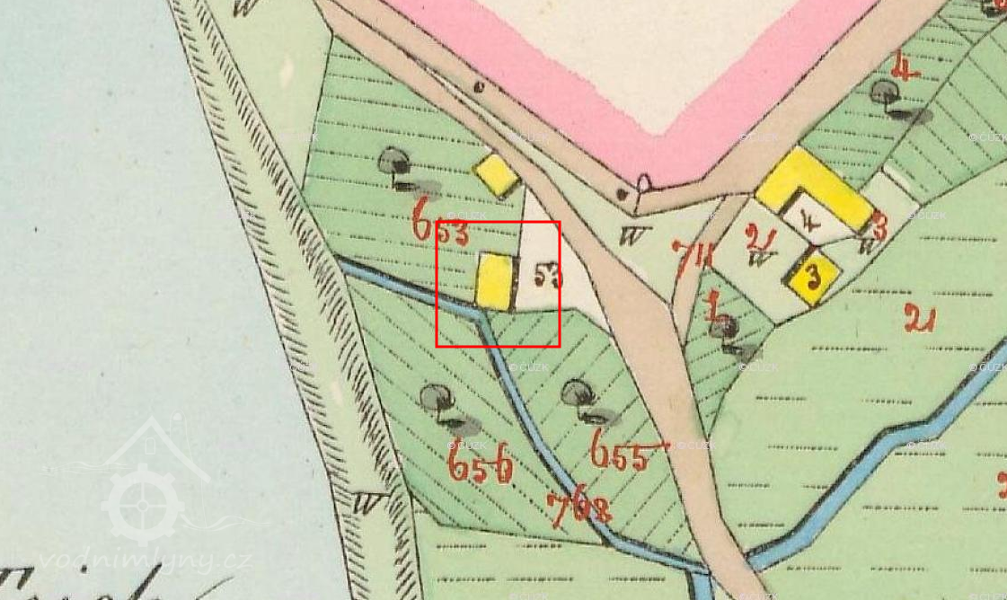 PopisV r. 1930 zde bylo 1 kolo na svrchní vodu, průtok 0,139 m3/s, spád 3,5 m, výkon 4,22 k.