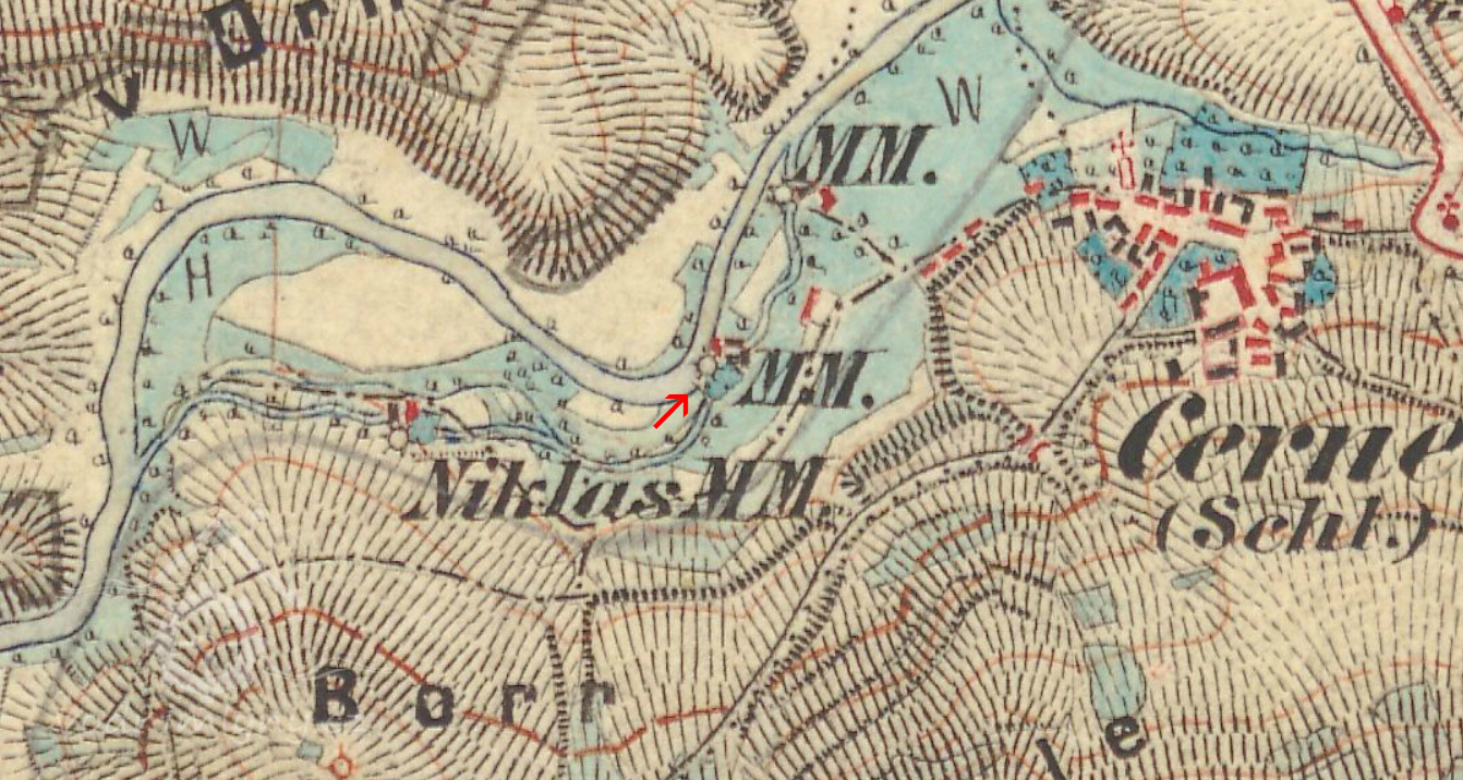 Mlýn je zachycen již na mapě I. vojenského mapování.