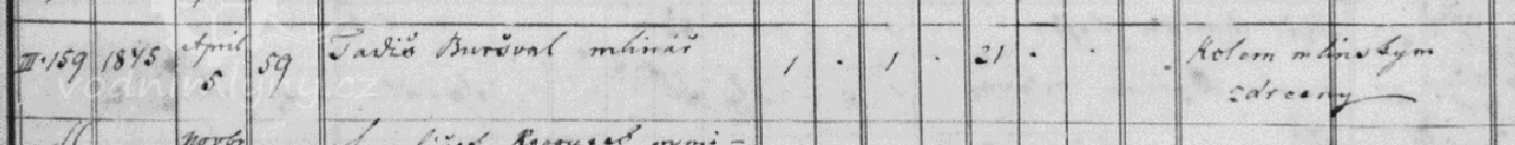 Okolo r. 1845 zde byl mlynář T. Buršval. 5. dubna 1845 byl rozdrcen mlýnským kolem. Bylo mu 21 let.
