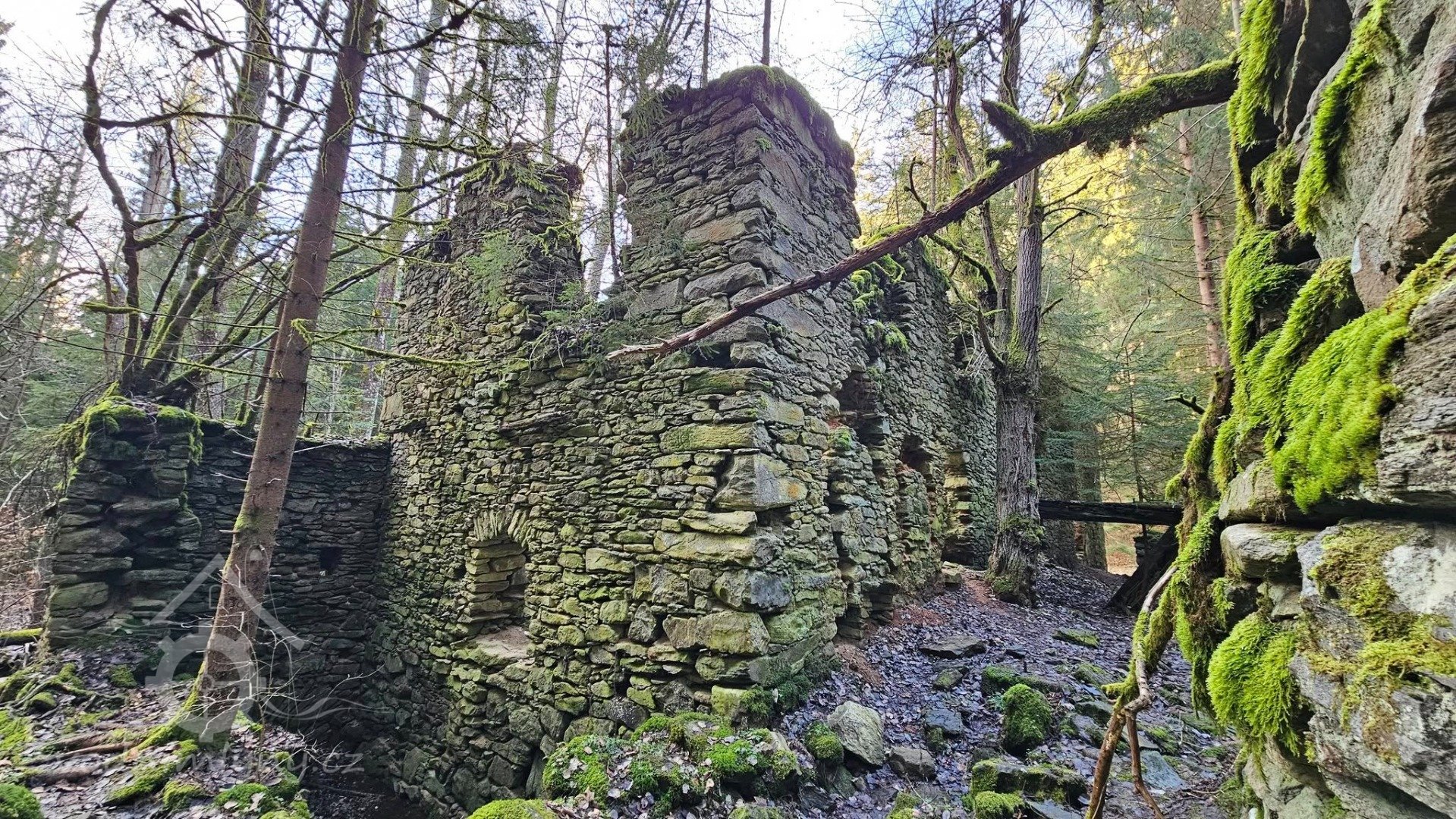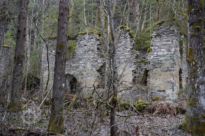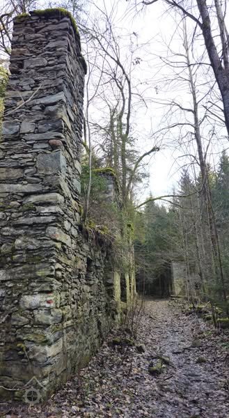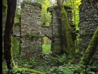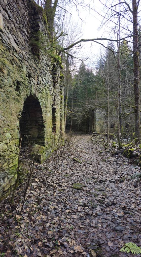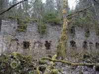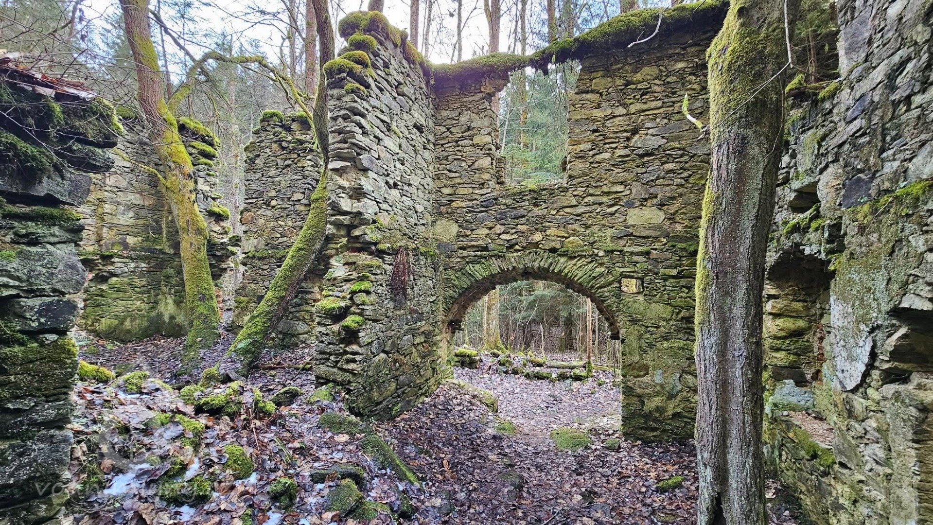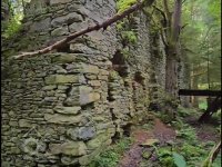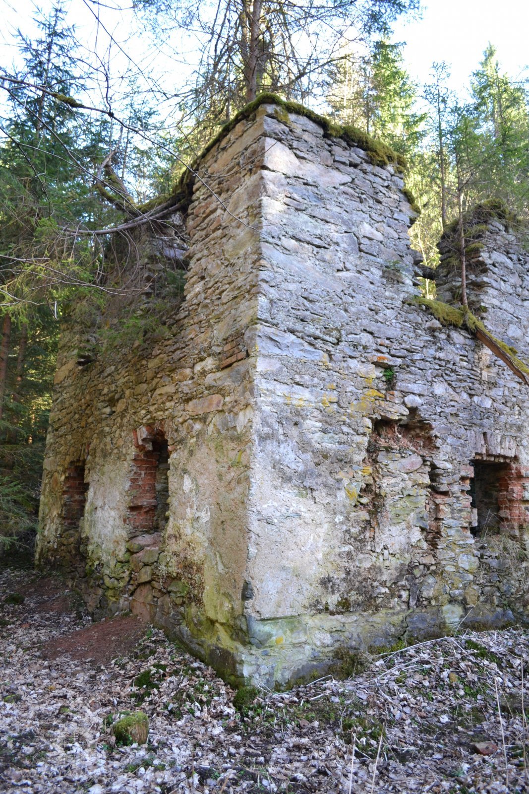 Mohutné zříceniny budov sirkárny, mlýna, pily a nedaleké elektrárny.