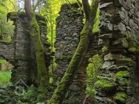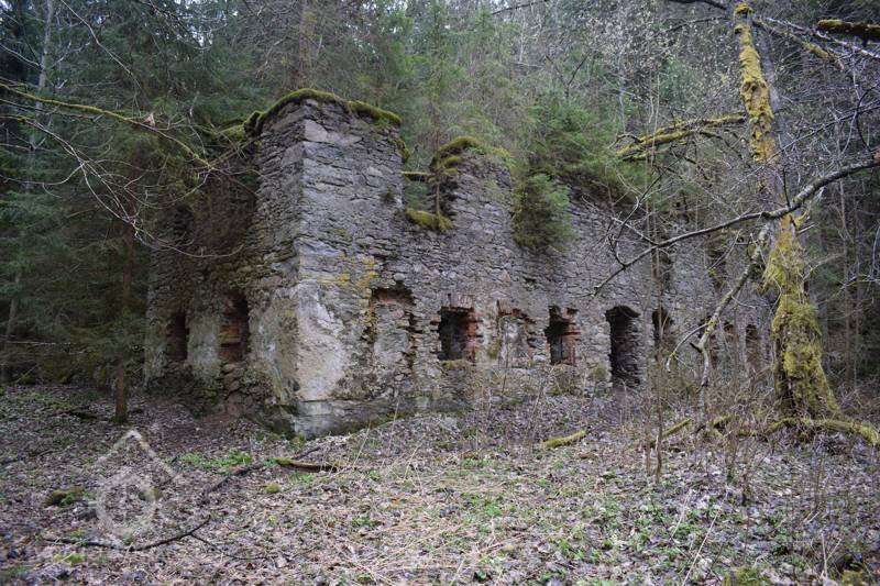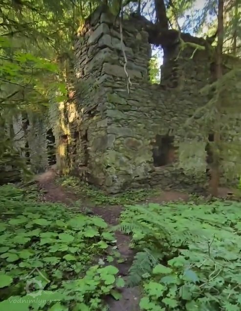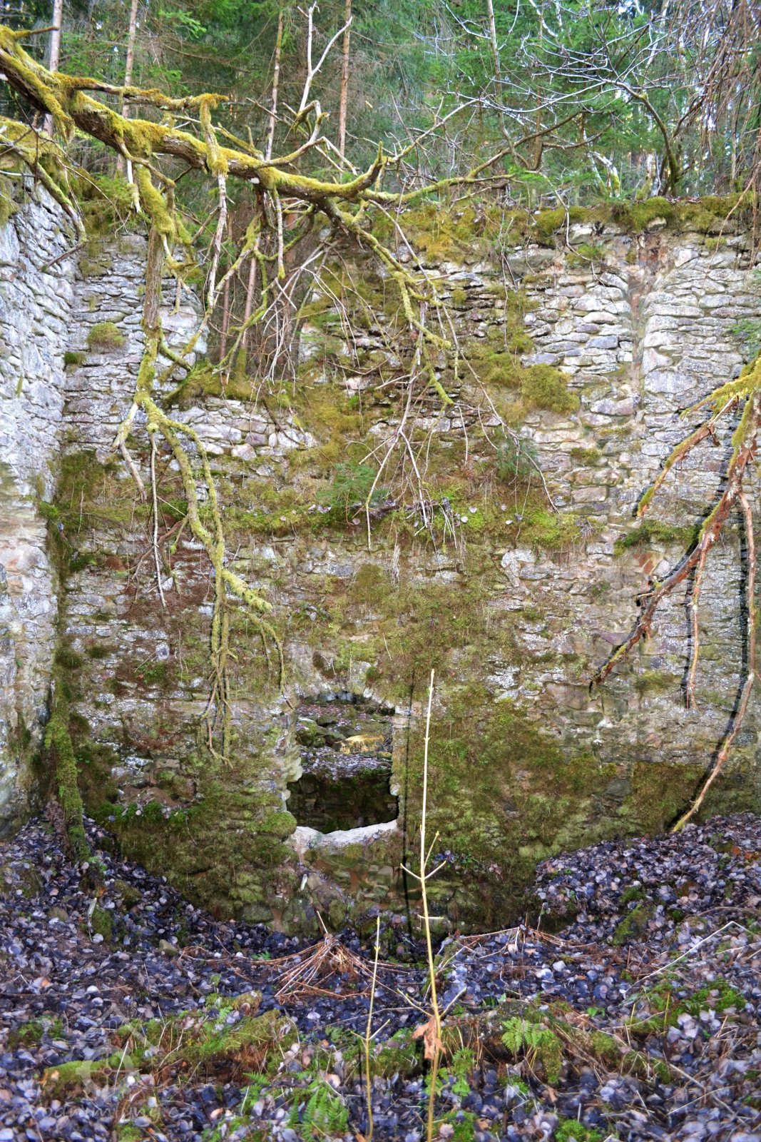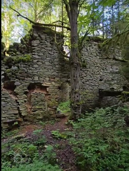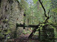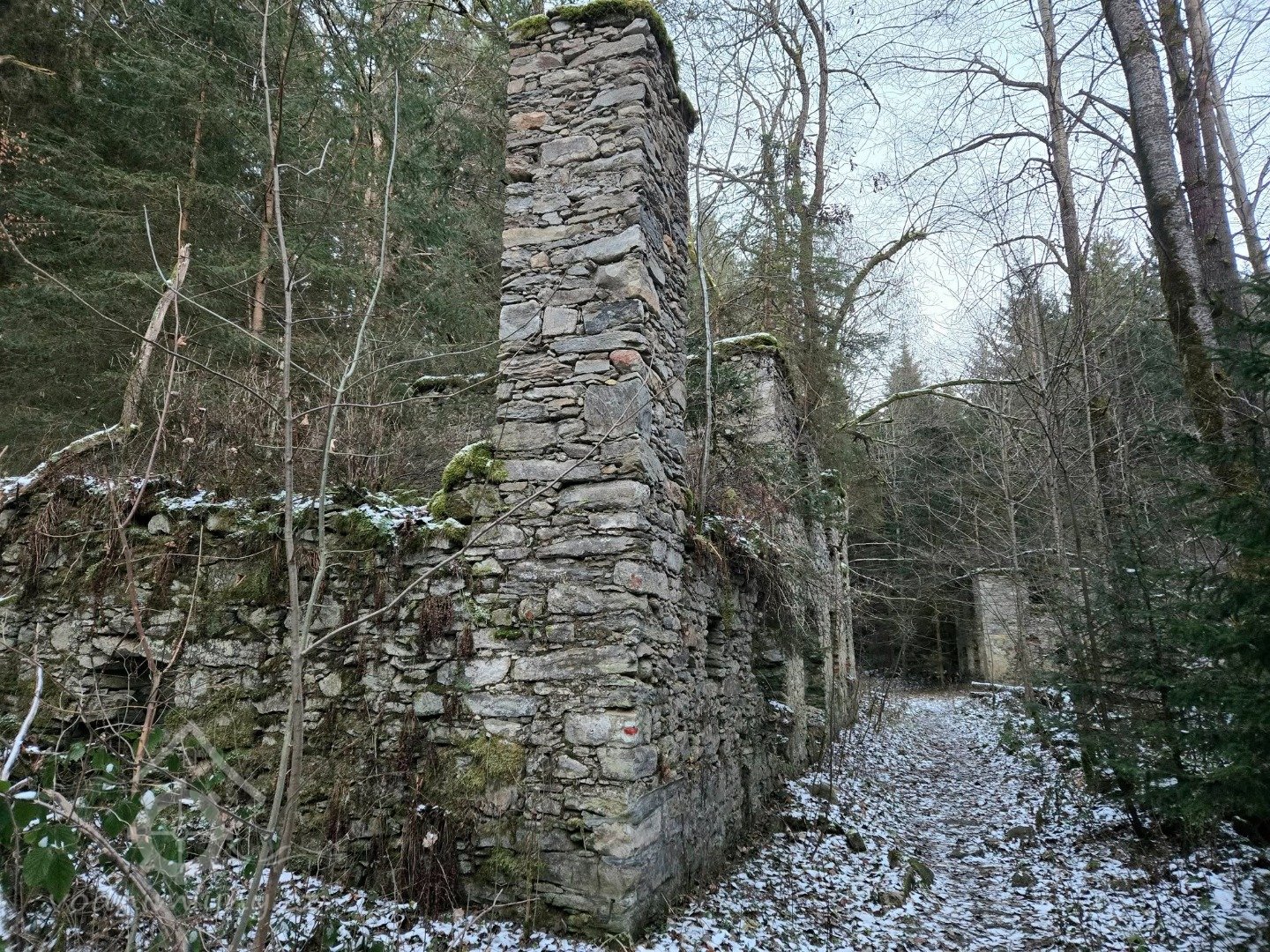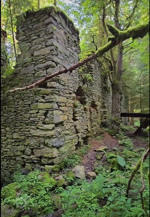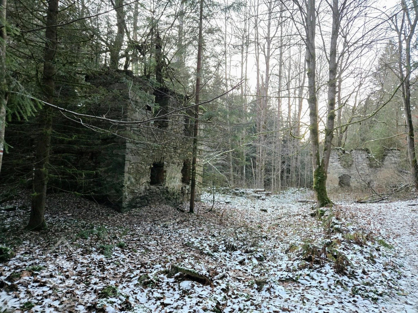 Mohutné zříceniny budov sirkárny, mlýna, pily a nedaleké elektrárny.