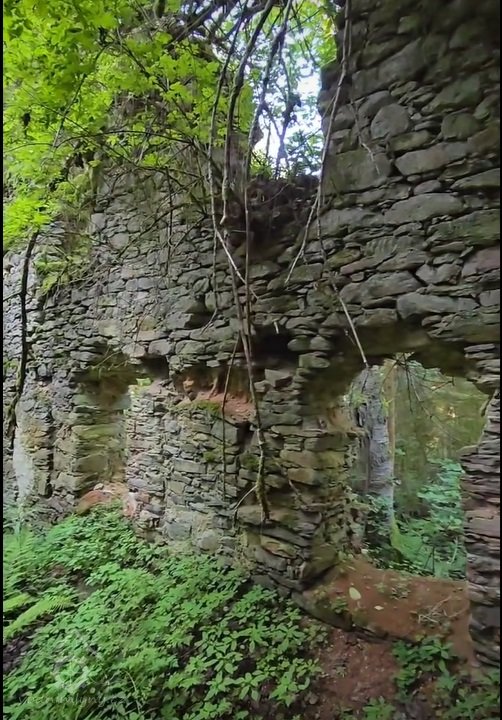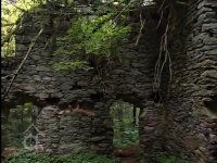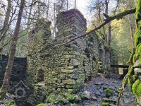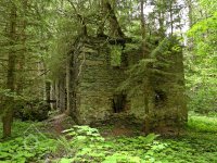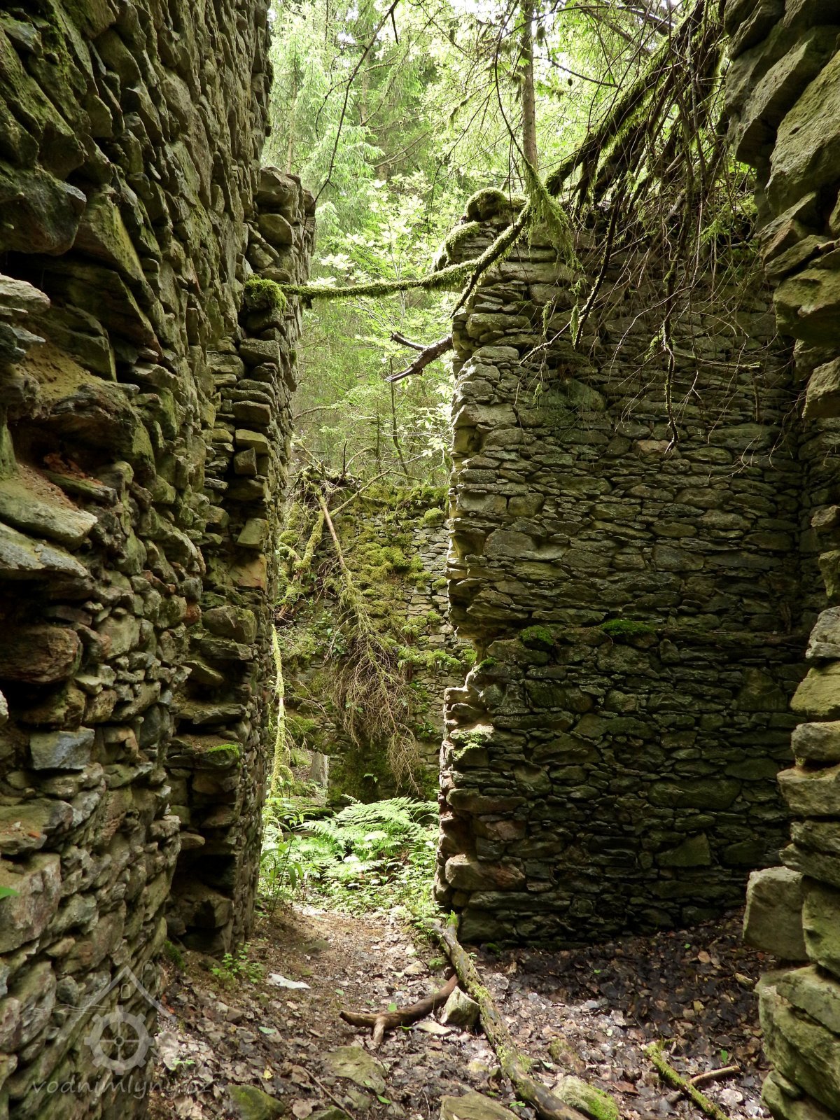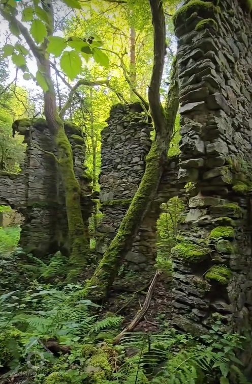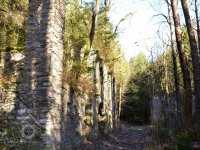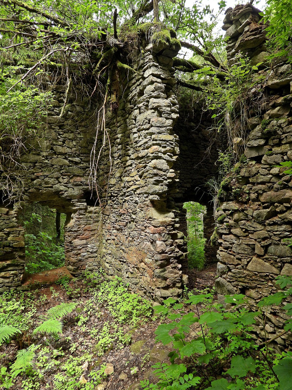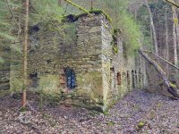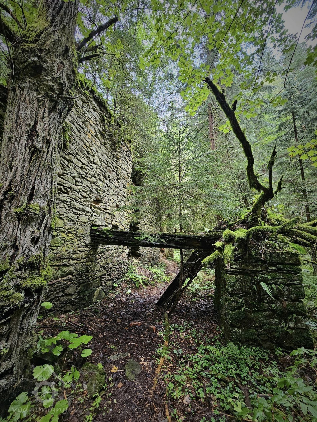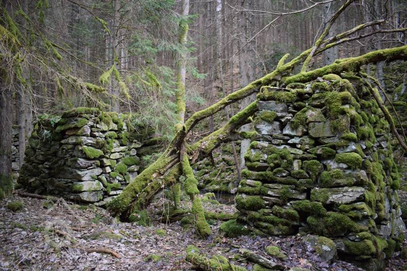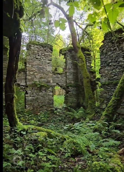 Mohutné zříceniny budov sirkárny, mlýna, pily a nedaleké elektrárny.