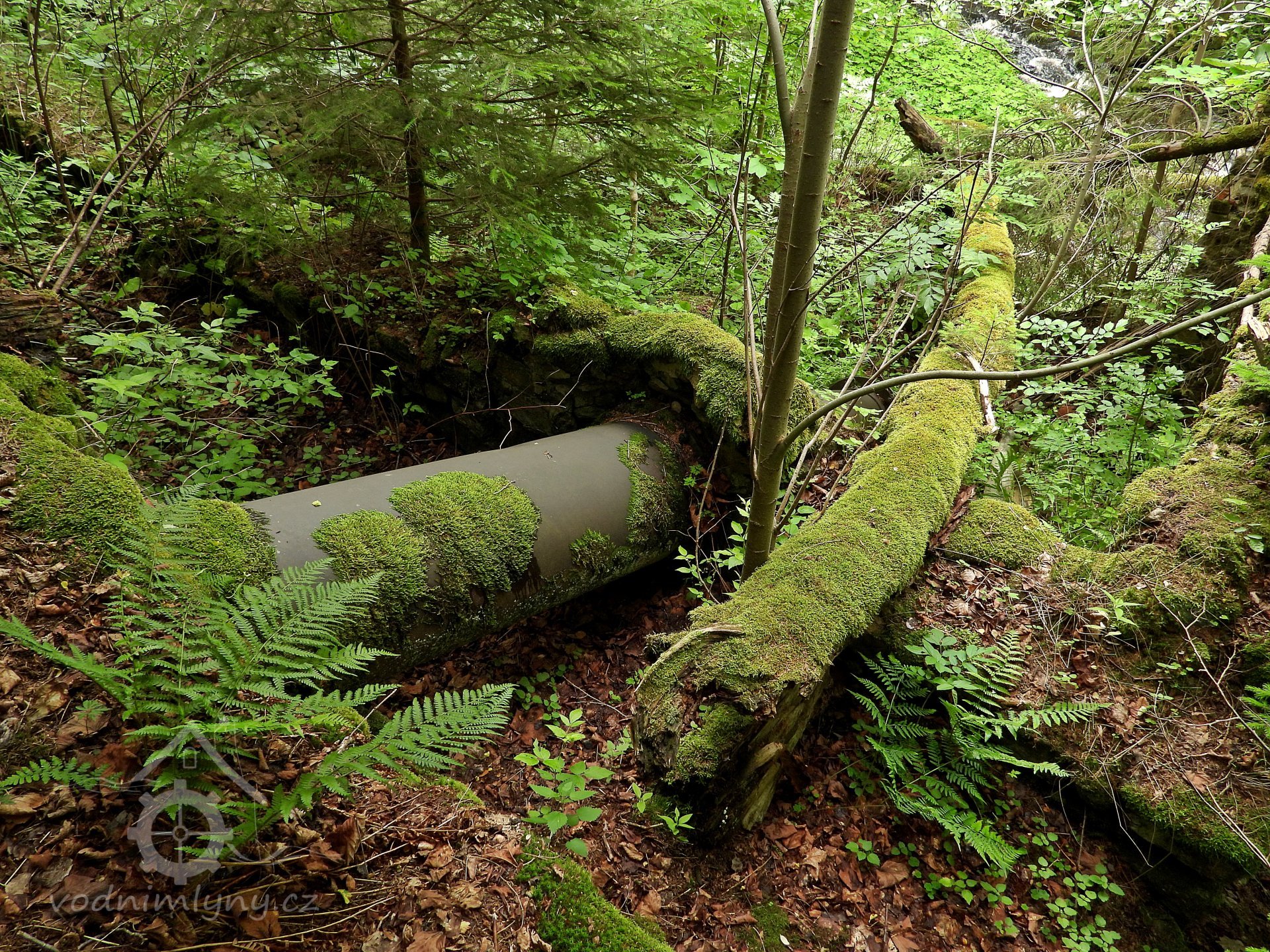 Vodu přiváděl otevřený náhon o délce 450 m a spádu 23 m. Zajímavostí je, že hladina vody v lednici je shodná s hladinou blízkého potoka. Pro získání spádu na kolo o horní vodě, později na Francisovu turbínu byl vybudován otevřený náhon - vantroky vyložených nad terén pomocí přibližně 11 kamenných pilířů.