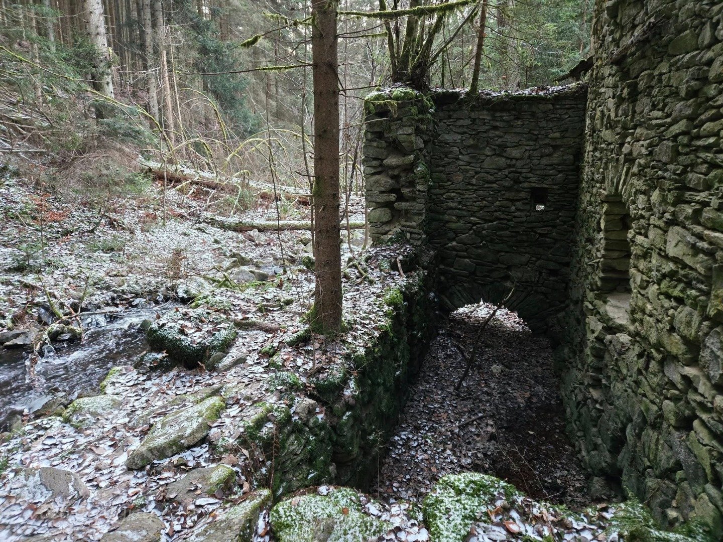 V lokalitě nedaleko mlýna stojí zřícenina bývalé hydrolektrárny, ke které vedl náhon částečně vedený pod zemí. (HŠ)