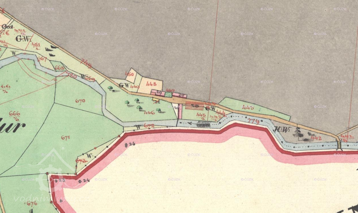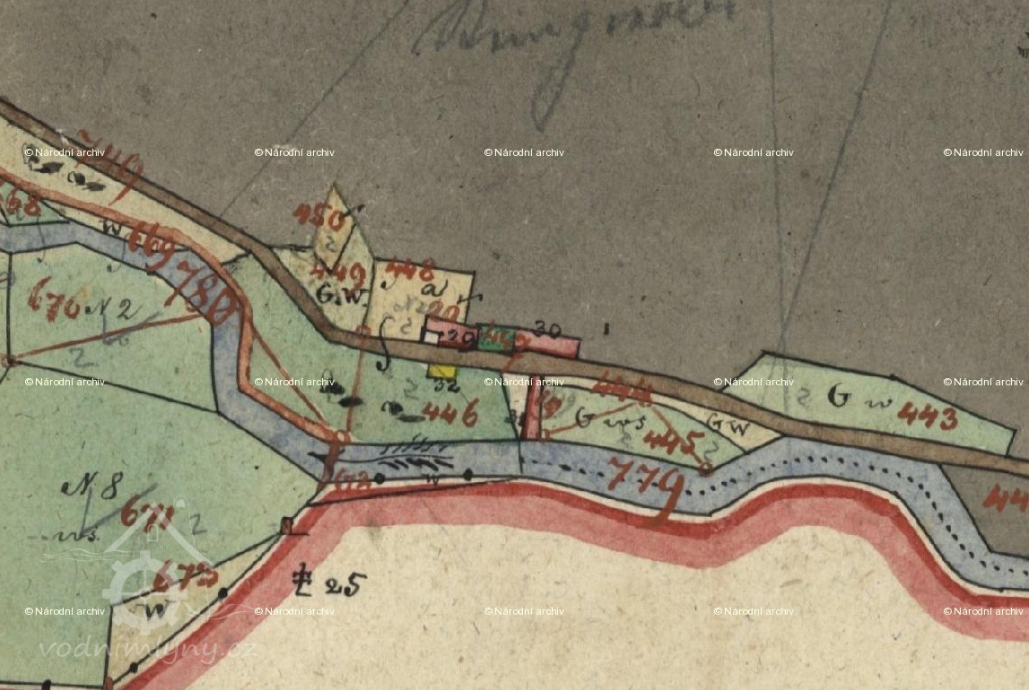 Na mapě I. vojenského mapování v lokalitě není zanesena žádná stavba, na mapách stabilního katastru již ano, chybí však značka vodního kola a tak nevíme zda zde v té době již pracoval nějaký provoz poháněný vodní silou.