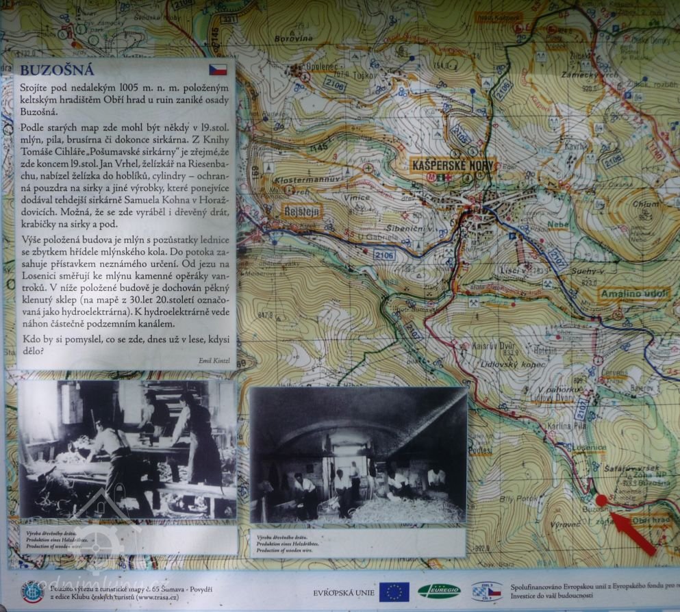 Historie Buzošné je zahalena tajemstvím, během 2. pol. 19. stol. byla podle nejnovějších výzkumů patrně součástí horažďovické sirkárny Samuela Kohna, zřejmě se zde nevyráběly přímo sirky ale pouzdra na sirky, želízka do hoblíků a možná i dřevěný drát.