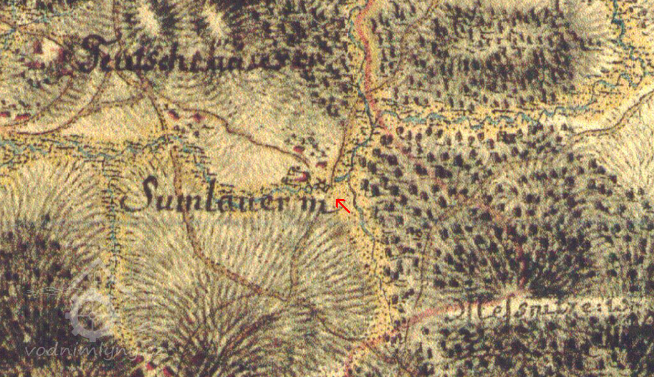 Mlýn je jako jeden z pouhých dvou mlýnů na Horském potoce zachycen již na mapě I. vojenského mapování.
