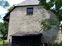 Dochovaný mlýn s vysokou mansardovou střechou, postavený patrně okolo roku 1800.