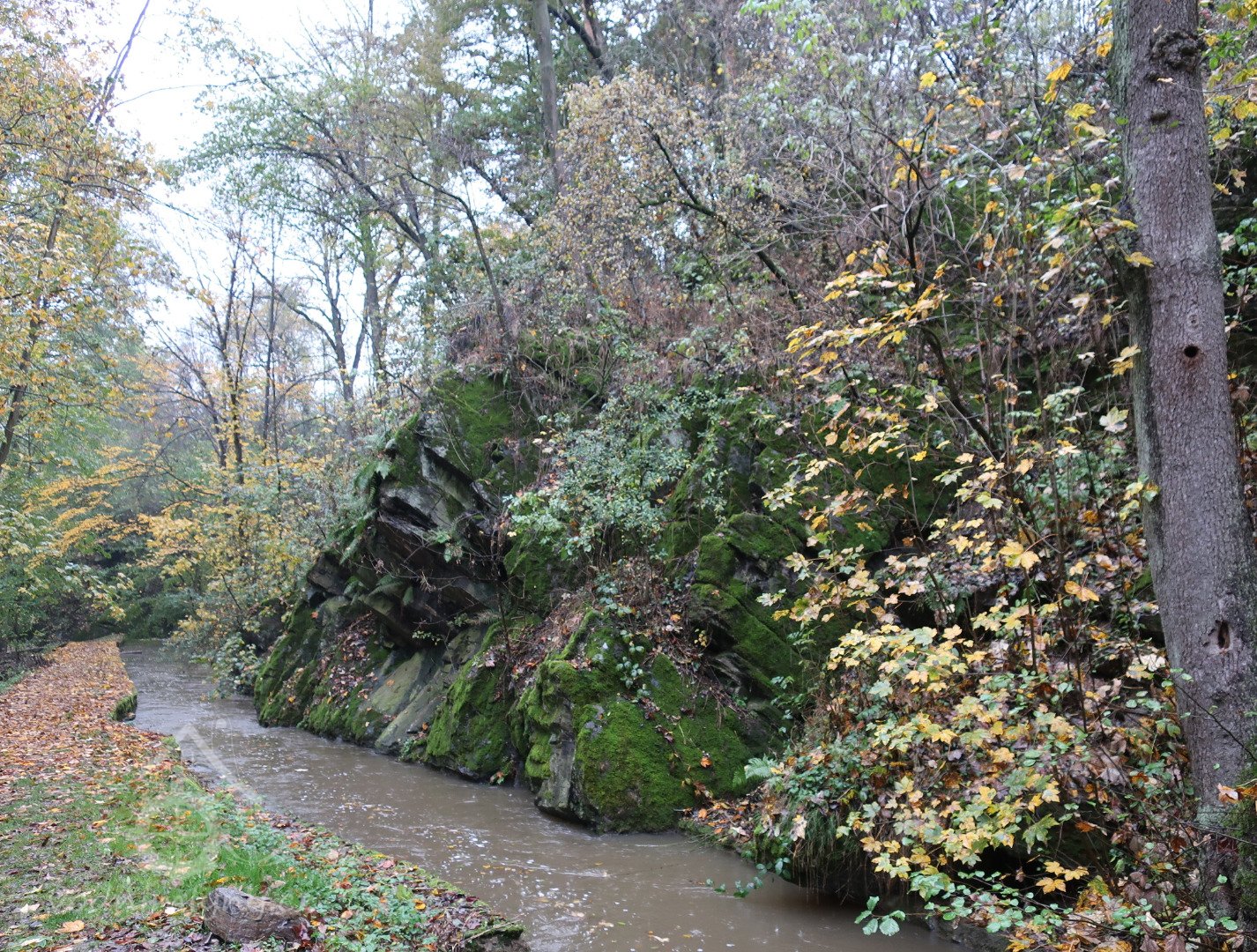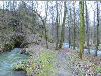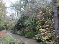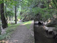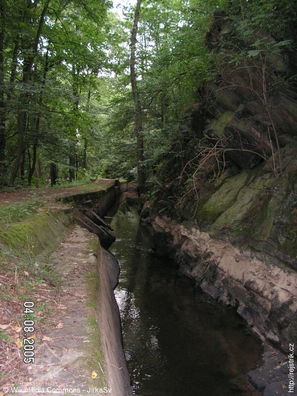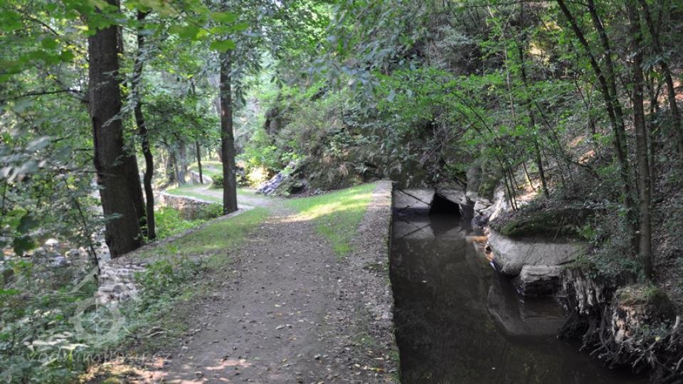 Mlýn, založený na poč. 15. stol., který využívá pozoruhodný náhon vysekaný ve skále.