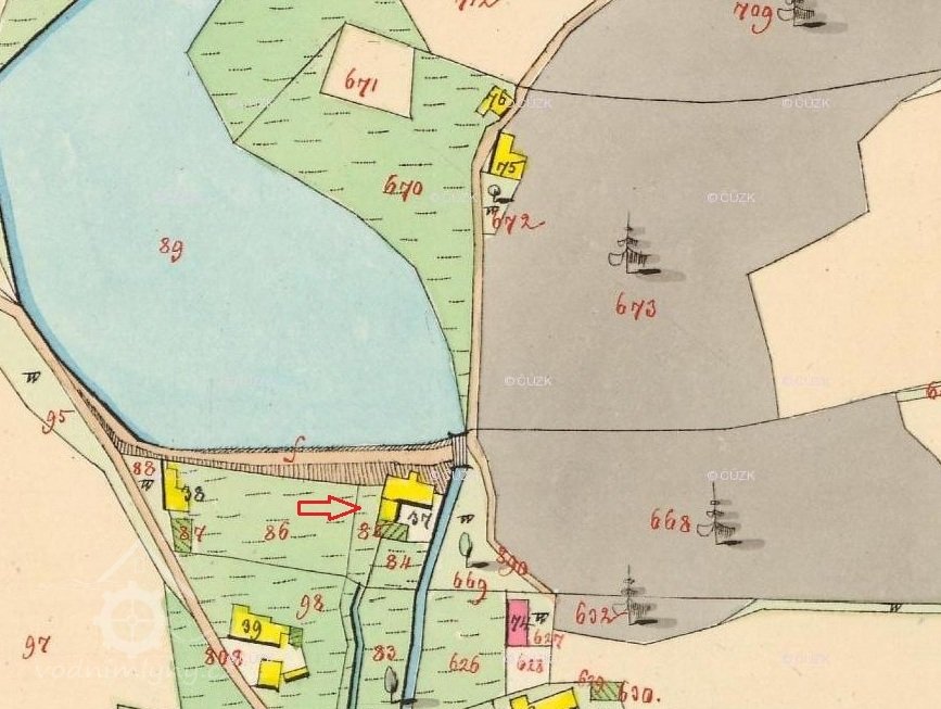 PopisDle polohy mlýna pod vysokou hrází rybníka lze předpokládat pohon na vrchní vodu.