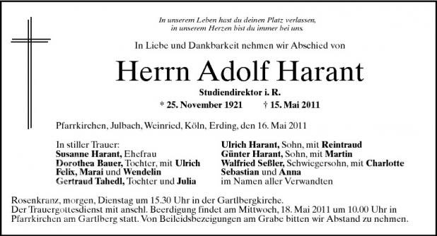 Johannes Harant, který byl opatským mlynářem v Klášterském mlýně, zřejmě tento mlýn opustil po smrti své malé dcery v březnu 1703. Při křtu jeho syna Johannese 9. června 1704 je v církevní matrice Rejštejn 01, obrázek 28, uveden zápis: „Mlynář zde“, což znamená, že byl mlynářem v Rejštejně. Ať je to jakkoli: syn Mathias Harant se narodil 13. února 1707 ve Wunderbachu a byl pokřtěn 24. února 1707 v Rejštejně (Rejštějn 01, obr. 36) a poslední dítě, Eva Maria, se také narodila ve Wunderbachu a byla pokřtěna 4. září 1709 (Rejštejn 01, obr. 45). To znamená, že Harantův mlýn ve Wunderbachu byl postaven v letech 1704 až 1707 Johannesem Harantem.