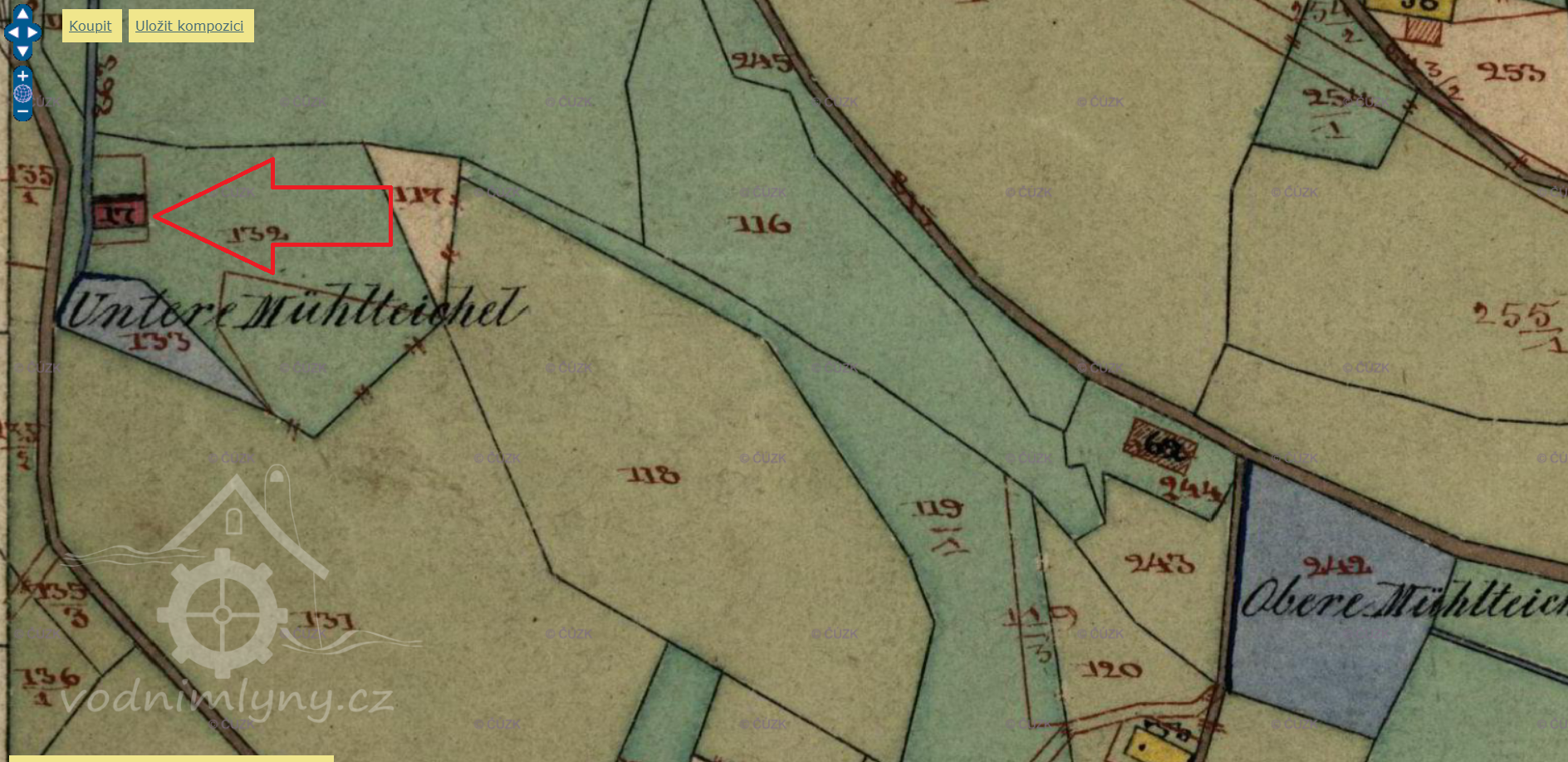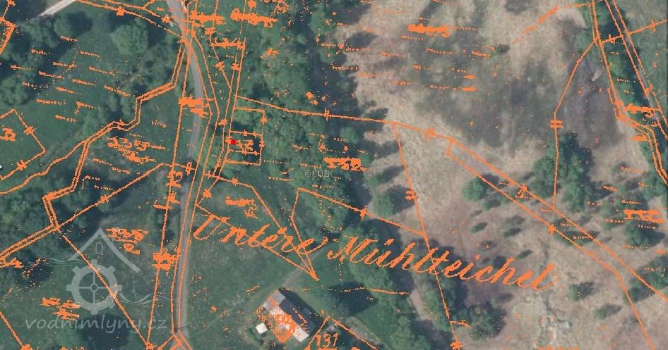 Malý mlýn pod dvojicí mlýnských rybníčků, zaniklý patrně již v pol. 19. století, popisné číslo přeneseno na nové stavení, položené cca o 80 m jižněji, které však patrně již nesloužilo jako mlýn.