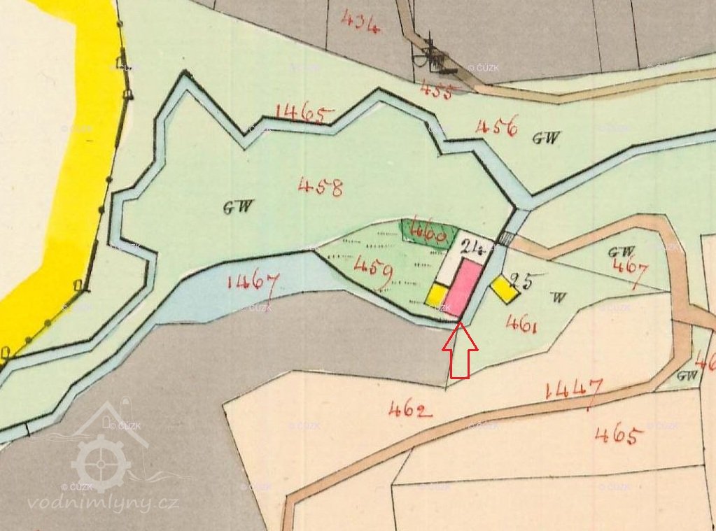 Nad mlýnem byla na náhonu akumulační nádrž.