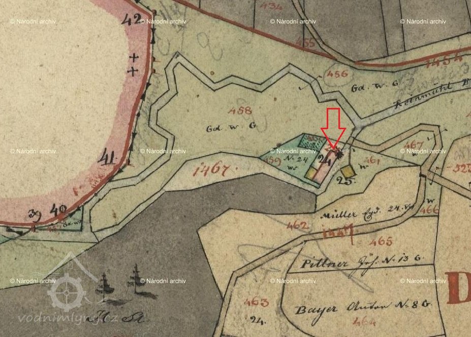 V roce 1800 zde byl evidován nájemce Josef Wenisch s manželkou Katharinou, kdy se jim zde narodil syn Johann Anton. V roce 1805 byl mlýn přečíslován, staré čp. 14 bylo změněno na čp. 24. Wenischové byly na mlýně asi do roku 1812, kdy je vystřídali Müllerové. Z tohoto rodu jsou známy 2 mlynáři, a to Andreas Müller s manželkou Magdalenou, rozenou Lorenz, a Franz Müller. Příslušník další generace, Franzův syn Josef, se v roce 1852 nenarodil již na mlýně, ale v obci Lhotka.