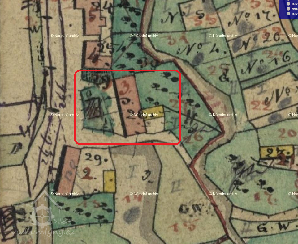 1930: 1 kolo na svrchní vodu, hltnost 0,1 m3/s, spád 4 m, výkon 3,4 HP