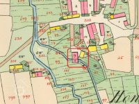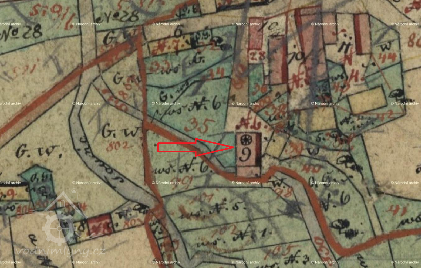 1884: mlýnský potok cca 400 m dlouhý bez splavu či jezu, na koci zřízeno bednění be zvláštních satvidel 1,5 m široké a 0,87 m hluboké, odtud voda teče skluzem na kola. Povinnost čistit a udržovat náleží majiteli mlýna.