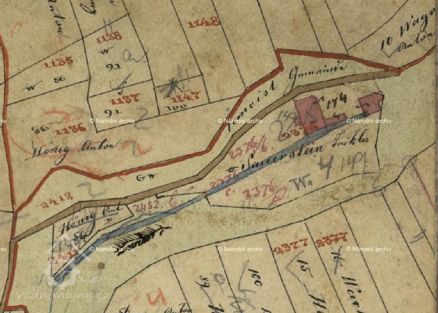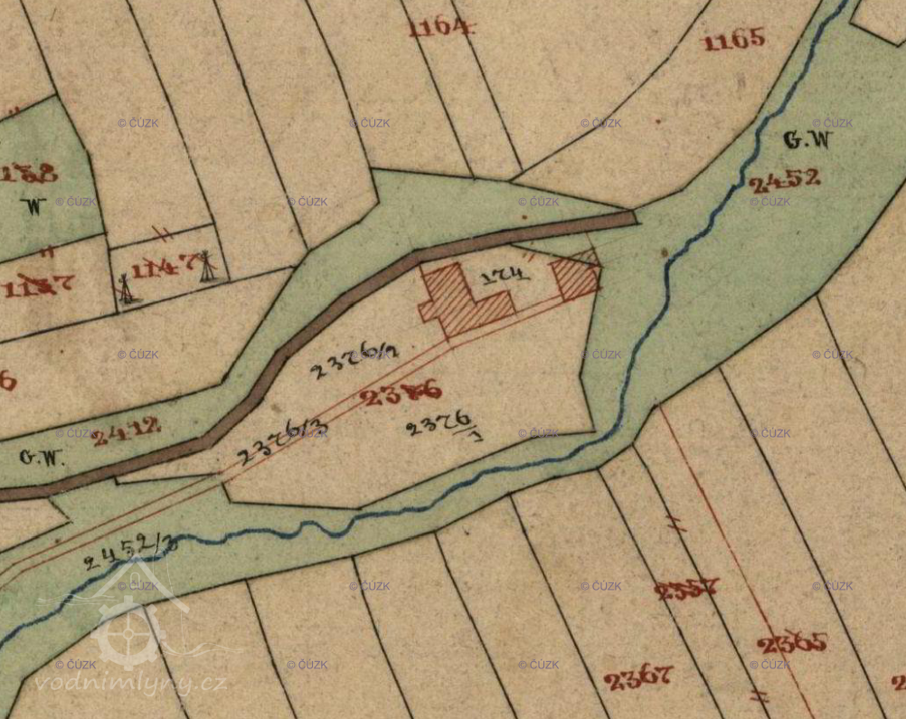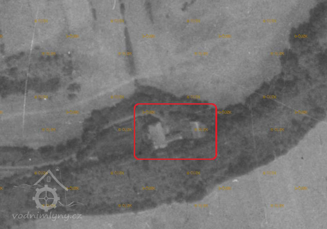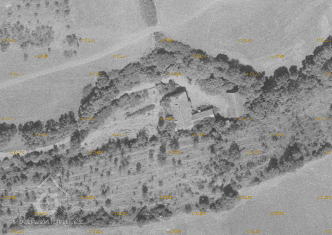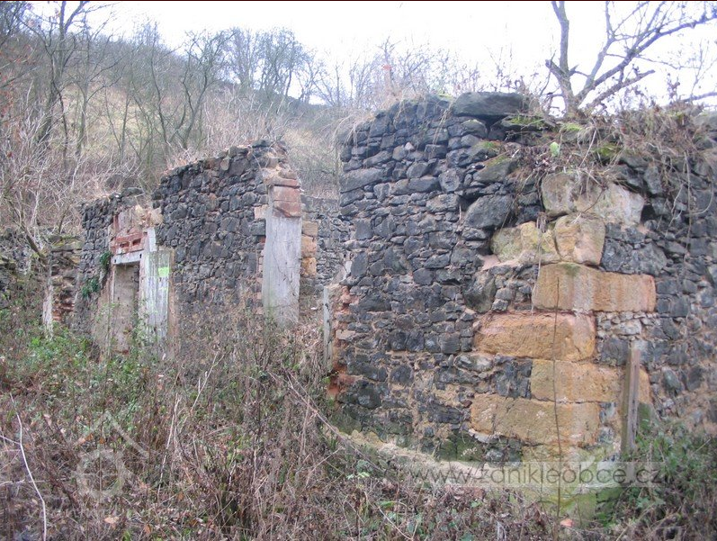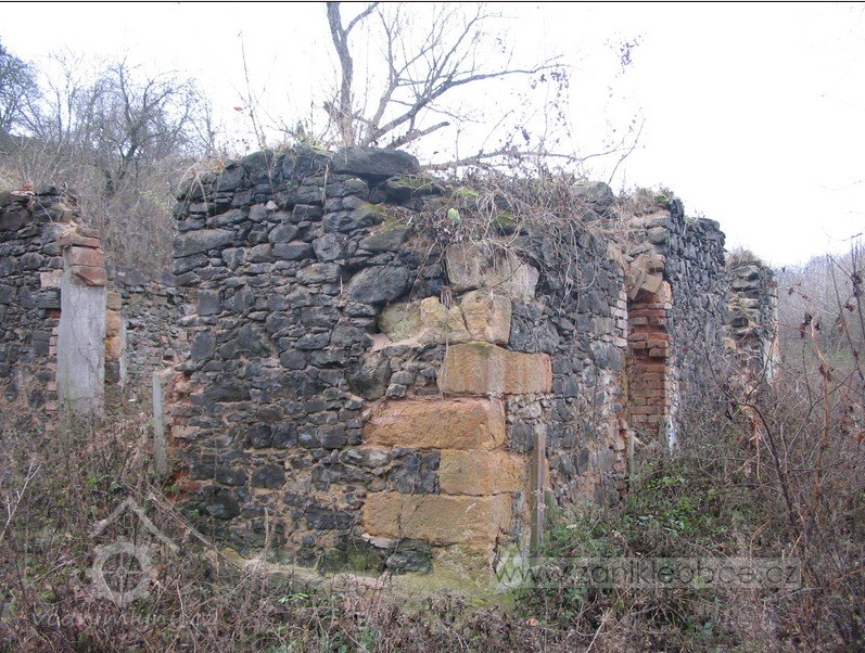 Prostřední a nejnovější z trojice zaniklých nepomyšlských mlýnů, zachovány zříceniny