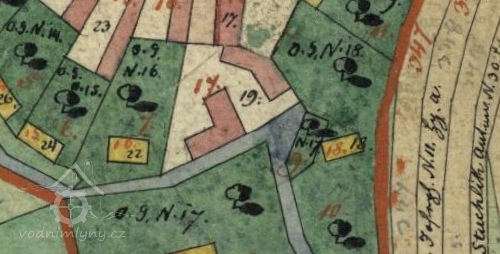 Mlýn uveden již na 1. voj. mapování, avšak historie sahá hlouběji-existence doložena už ve 14. století.