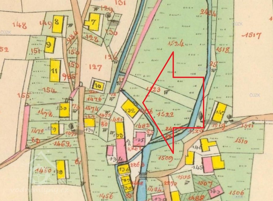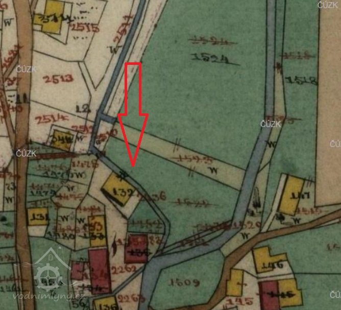 Uveden již na 1. VM s rybníkem. V seznamu z r. 1930 již uveden jako továrna na vyšívání. Dnes zachován pouze náhon.