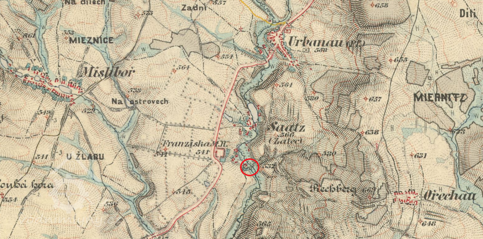 Větší mlýn v jižní části obce, údajně založený před rokem 1843 (ale je již na mapě I. voj. mapování).