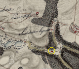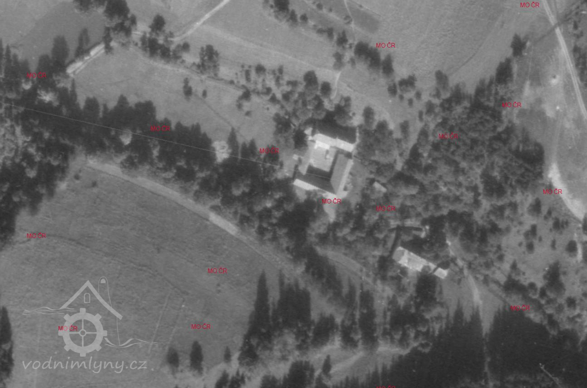 Mlýn na samotě, původní mlýnice již nestojí, mlýn se následně přesunul o 80 m jv na protější stranu potoka na katastr Hrochova (dnes je ovšem hranice posunuta).
