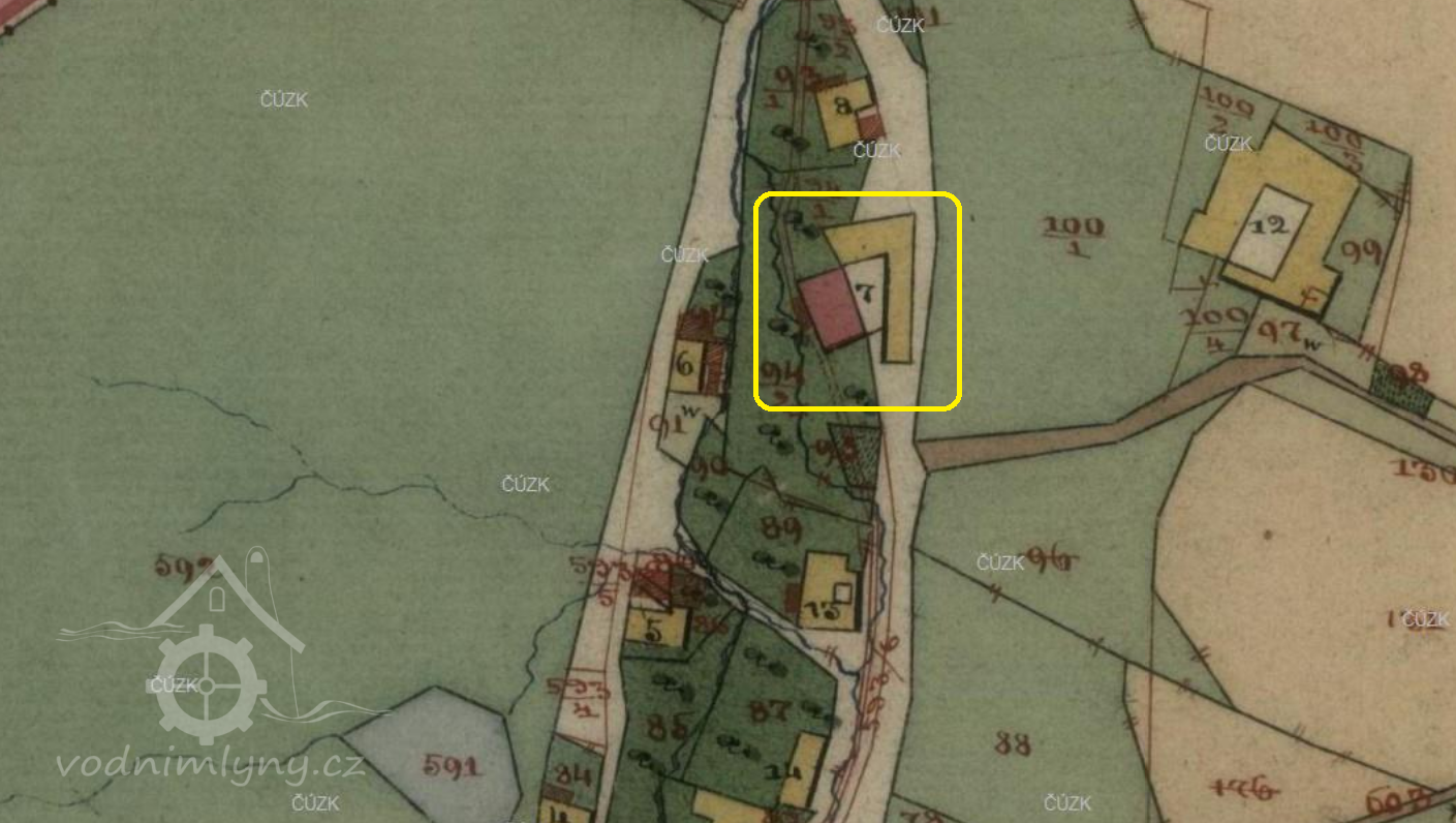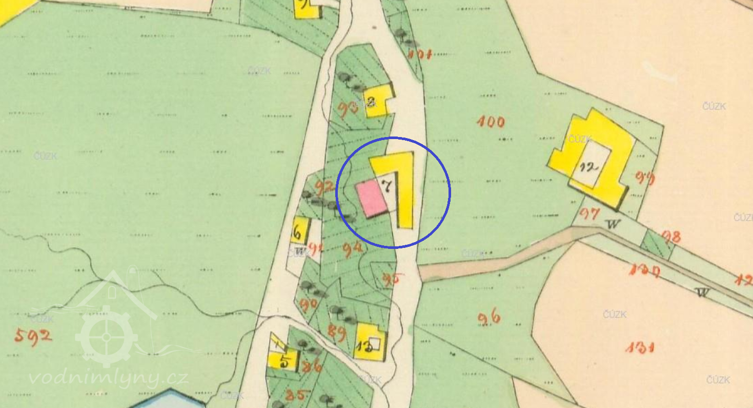 Popis1930: 1 kolo na svrchní vodu, hltnost 0,094 m3/s, spád 4,9 m, výkon 4 HP