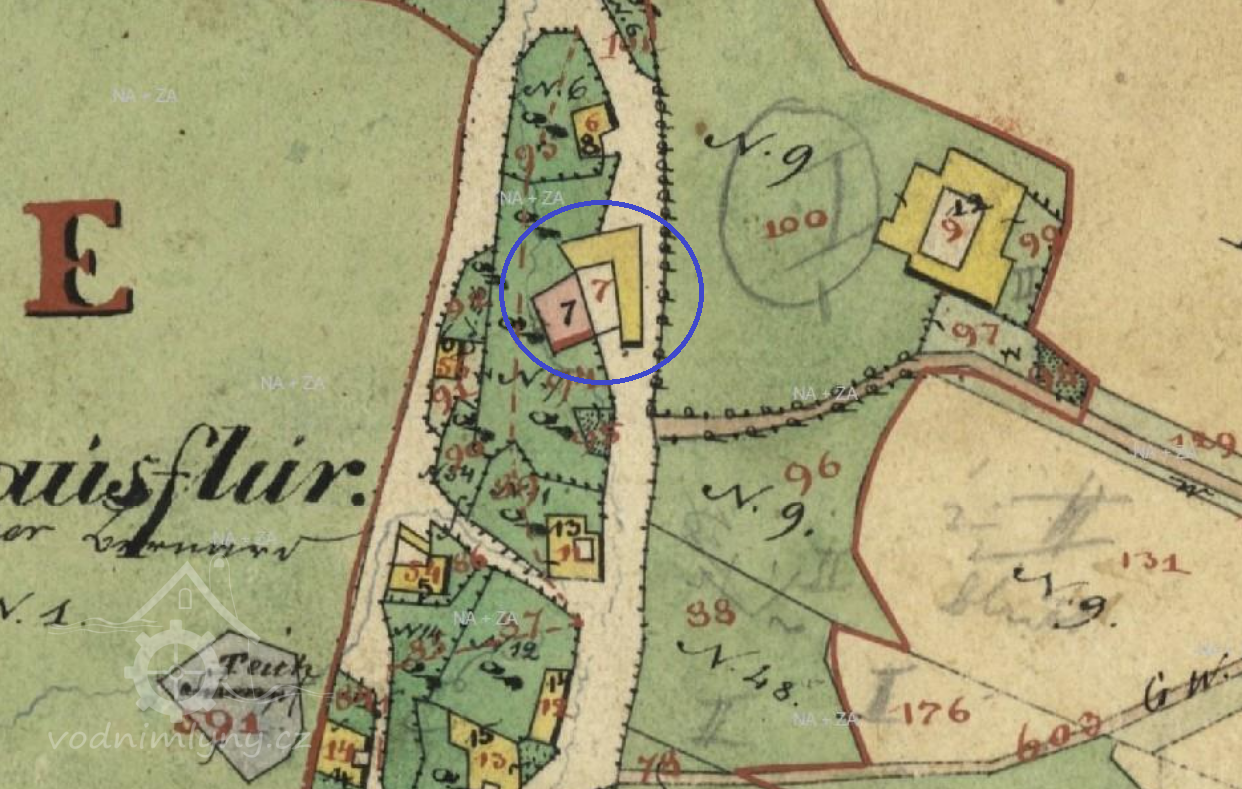 Velký selský statek, vlastní mlýnice stávala ve dvoře a dnes již neexistuje.