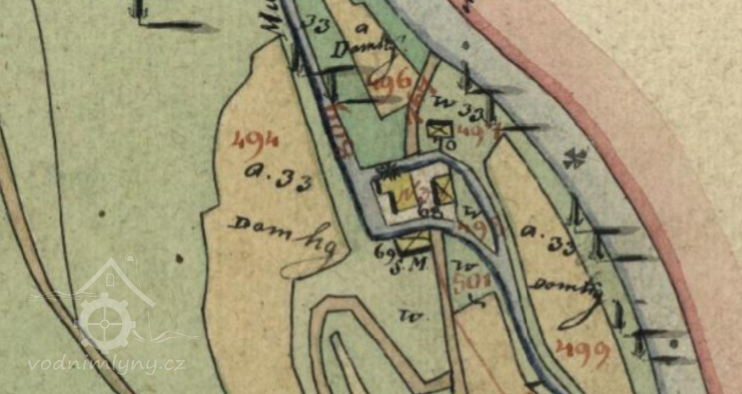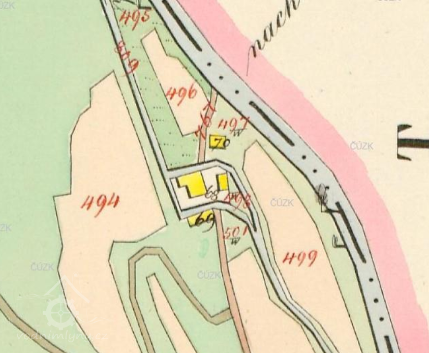 Mlýn zbořený při výstavbě hráze přehrady Bystřička, na jeho místě dnes chatkový tábor.