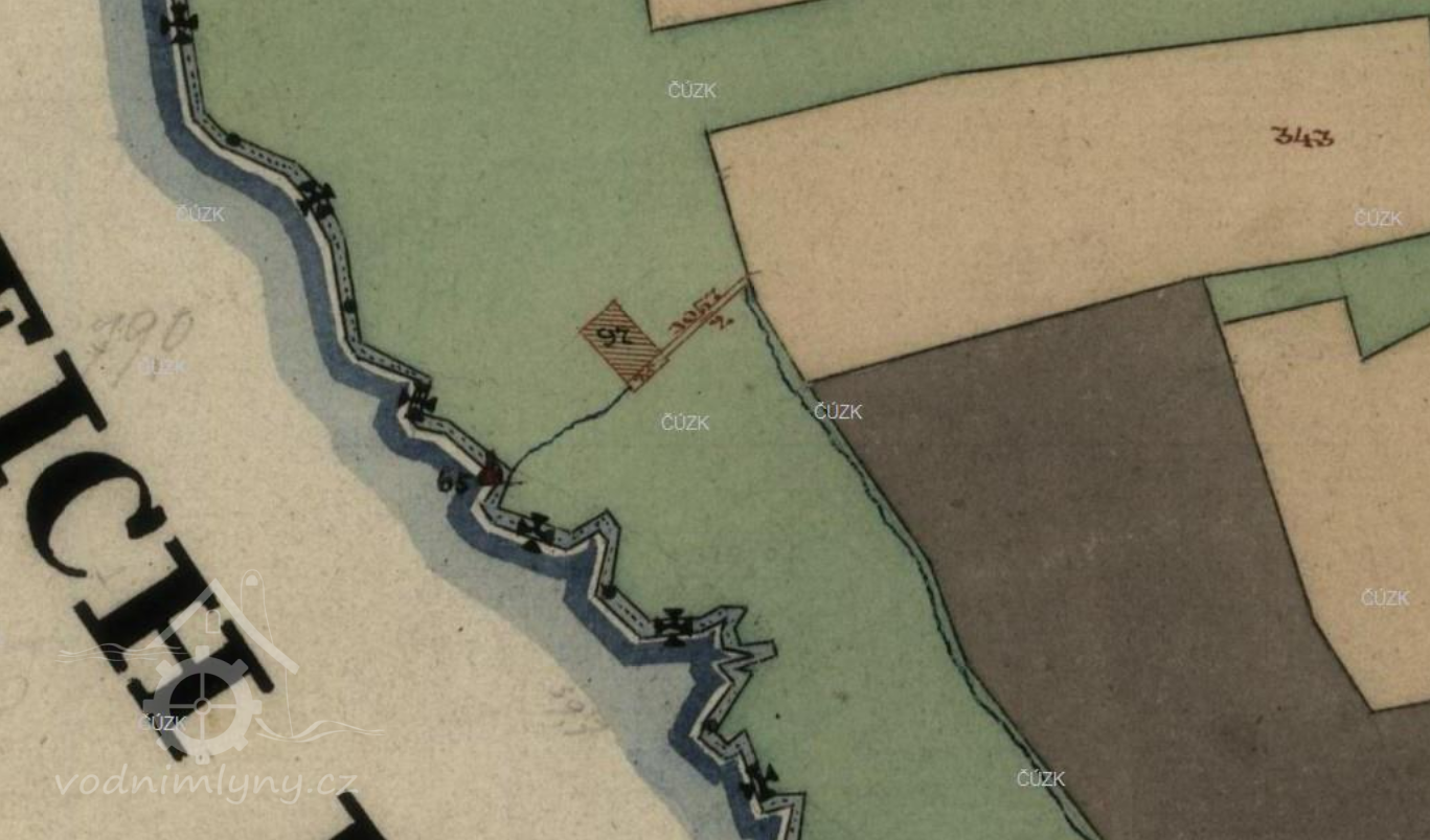 Usedlost čp.66 /st.p.97-/ obytné a mlýnské stavení /na skice k mapě Stab. katastru uvedeno čp.74/.
