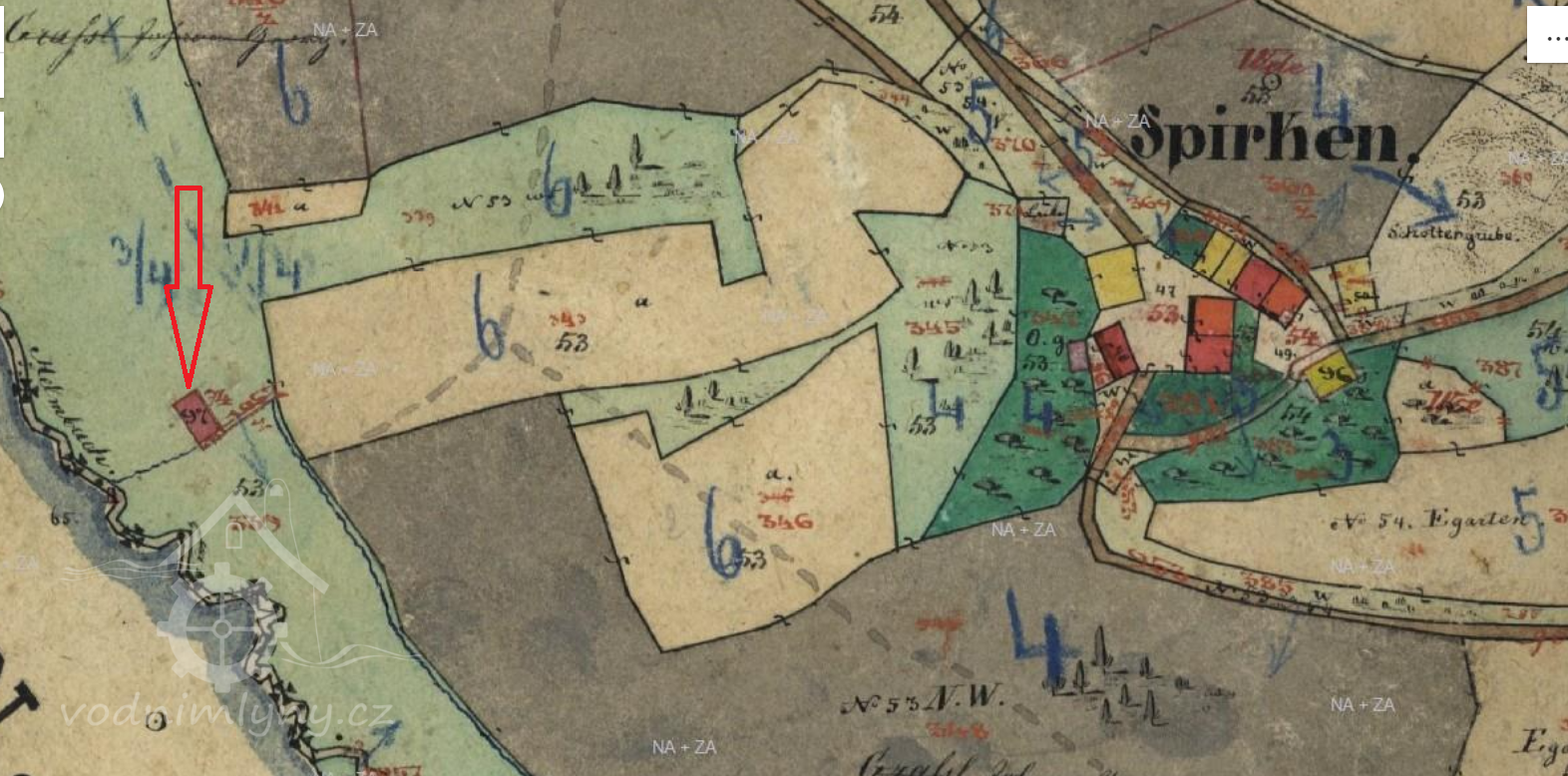 Majetkově patřila pod dvůr Spirkenköf čp. 31.