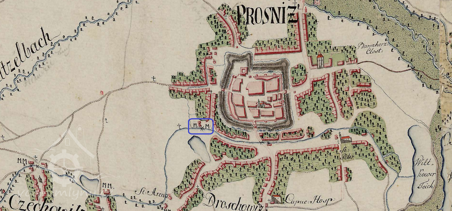 Největším mlýnem v Prostějově byl koncem 16. stol. horní mlýn, z něhož plynuly nejvyšší příjmy, které ročně činily 165 zl. 19 gr. ½ d