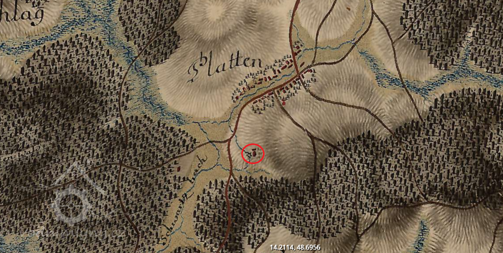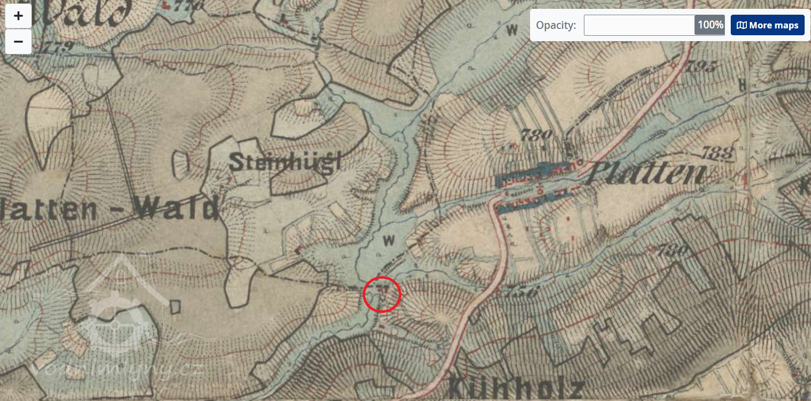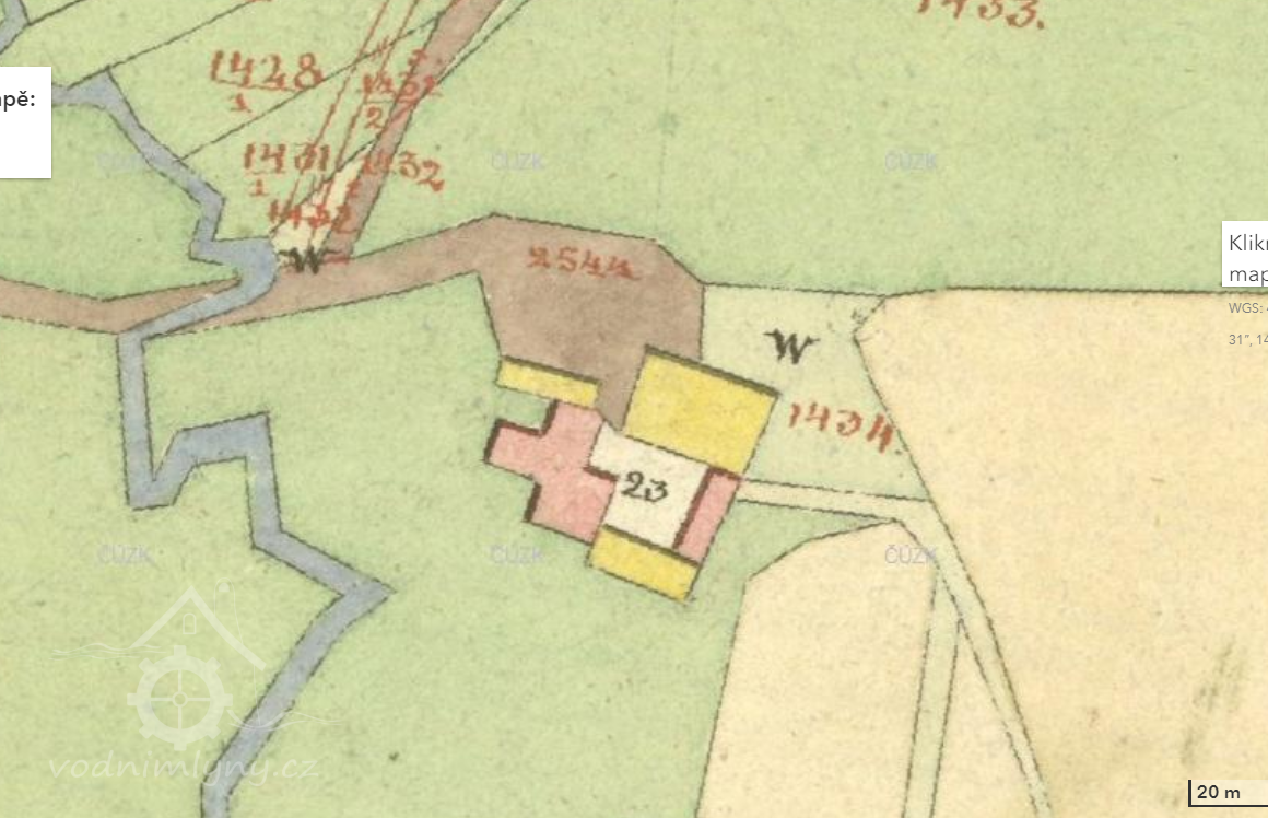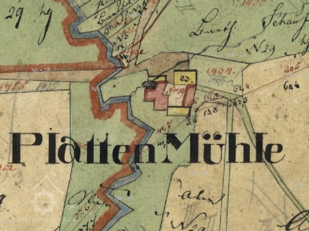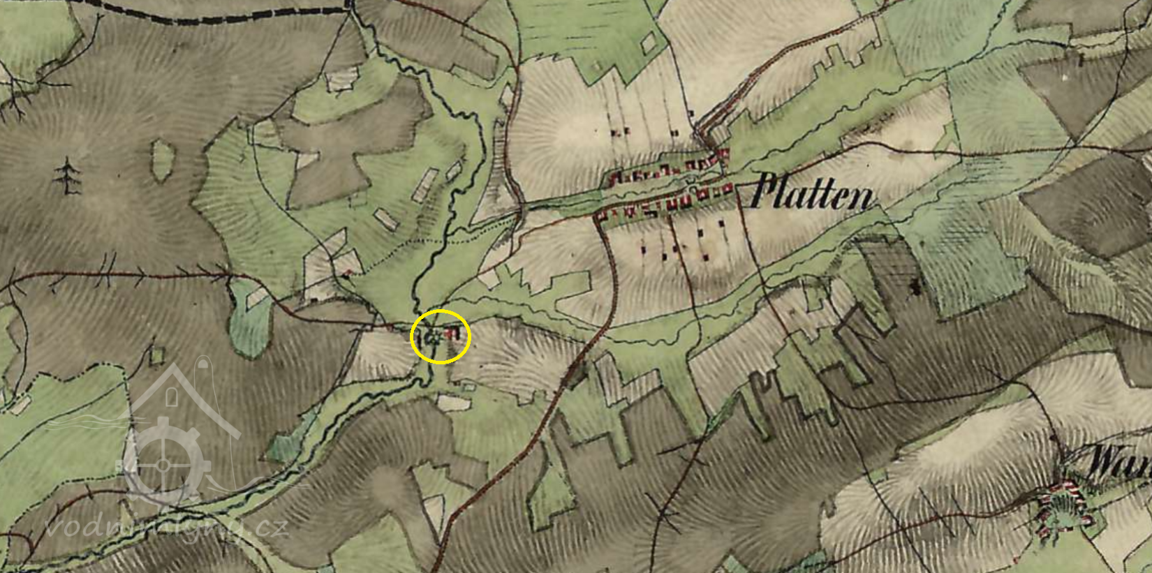 mlýn a pila u soutoku Blatenského a Černého potoka, stavení č.p.29 patřící rodu Loffler