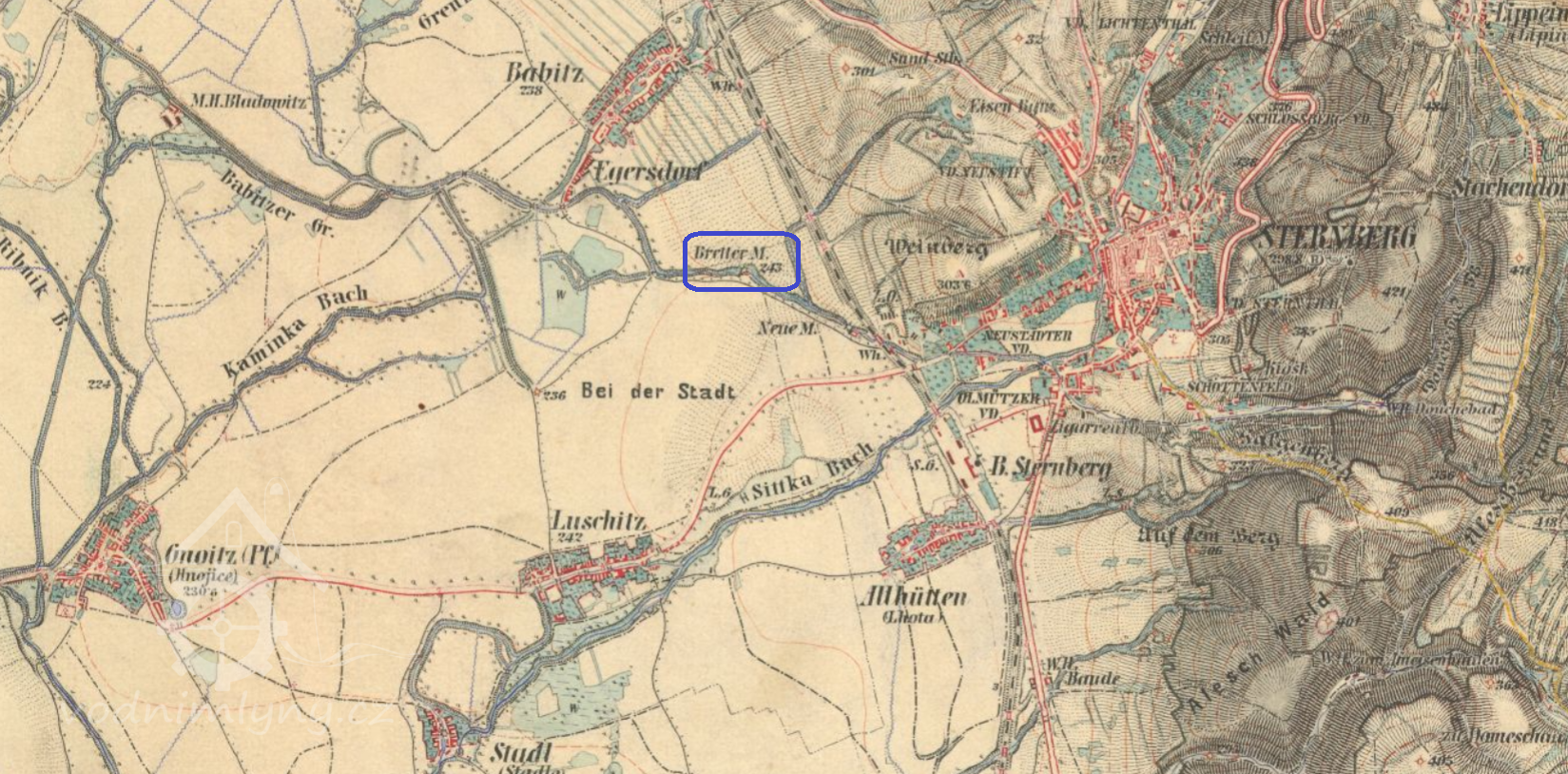 na mapě II. a III. voj. mapování pila (Brettermühle)