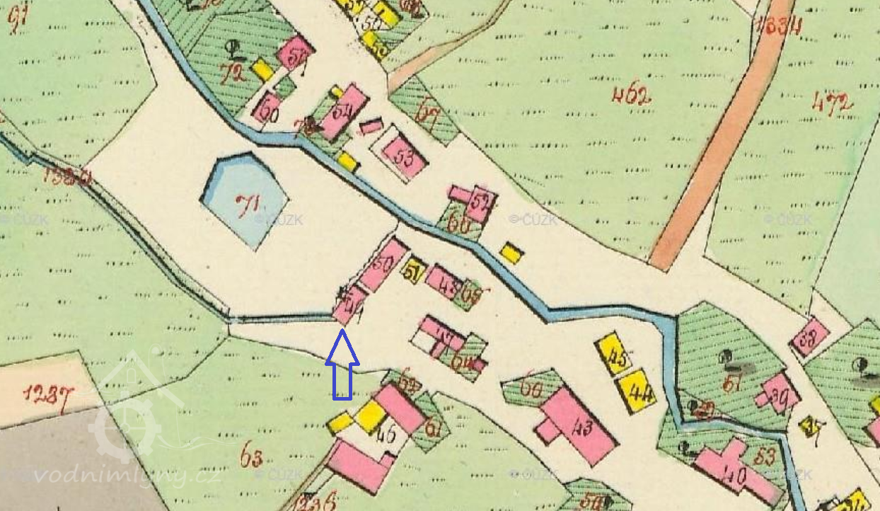 Popis1930: 1 kolo na svrchní vodu, hltnost 0,135 m3/s, spád 6 m, výkon 9 HP