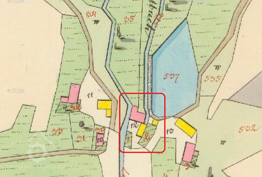 Popis1930: 1 turbína Francis, hltnost 0,17 m3/s, spád 3,3 m, výkon 5,8 HP