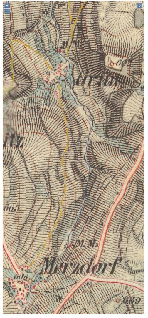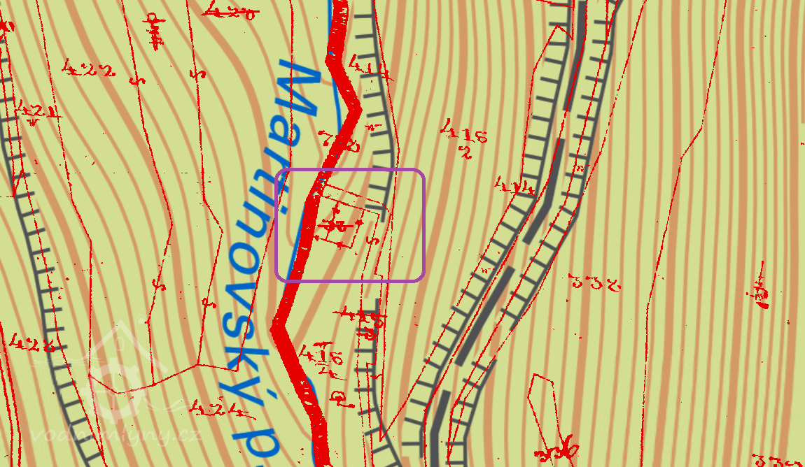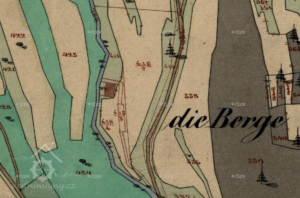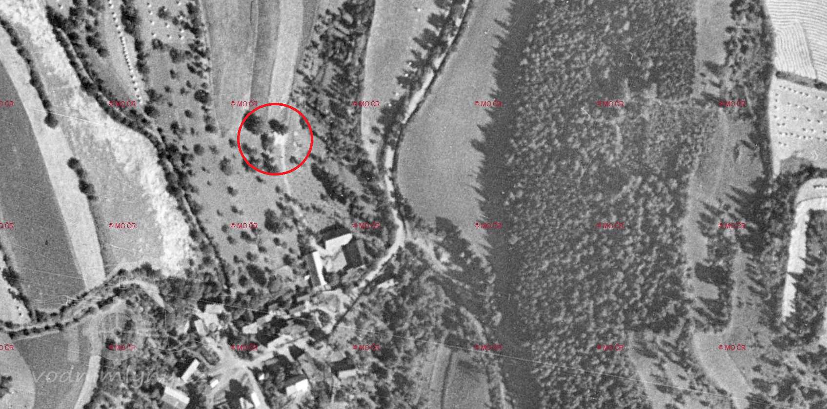 Zaniklý novější menší mlýn ve vojenském prostoru Doupov.