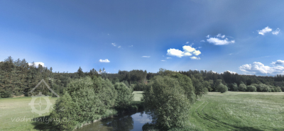 Šel jsem po silnici z Písku k Táboru vedoucí. Za vesnici Srlínem, tam kde pěkný, kamenný most přes bublavou říčku Smutnou se pne, opustil jsem silnici a kráčel po levé ruce kolem male kapličky po pěšince k blízkému mlýnu Hánovu, který uprostřed travnatých luk a zdravých, hustých lesů malebné se rozkládá. Šel jsem utěšeným údolím, po levém břehu říčky Smutné. Brzy přišel jsem k rybáři, který uprostřed luk, ve veliké jakési tůni, daleko od říčky vzdálené, na udici ryby chytal. Podivil jsem se tomu, nebot' místo, v němž rybář chytal, bylo, jak jsem již pověděl, velmi daleko od říčky vzdáleno a leželo mnohem výše, nežli řečiště Smutné. Odnikud přítok a nikde odpad! Podobalo se malému jezírku: podlouhlé jeho břehy, které husté vrboví a rákosí vroubilo, obnášely mnoho sáhů. Pozdravil jsem rybáře. Poděkoval mi vlídně a vstal. Spozoroval nepochybně moji zvědavost .,,Pane jste v té krajině nepochybně neznámý?" pravil tázavě. ,,Ještě nikdy jsem tudy nešel a divím se, odkud tato voda zde a jak se v ní ryby nalézt mohou." ,,Tomu se každý diví, kdo okolo našeho jezírka jde. Co už jen já tady viděl jít pánů a každý našemu se jezírku obdivoval. Ještě jste neslyšel, jak toto jezírko povstalo a co tady dříve bývalo?"