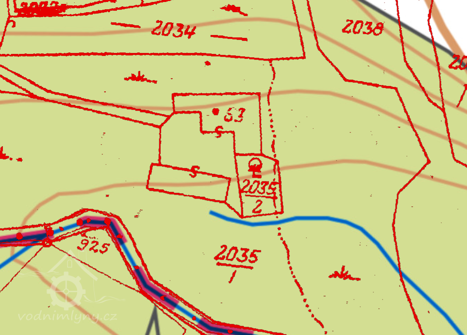 Zaniklý mlýn na samotě.