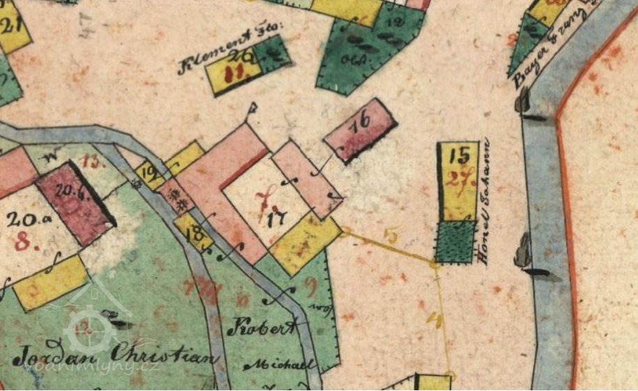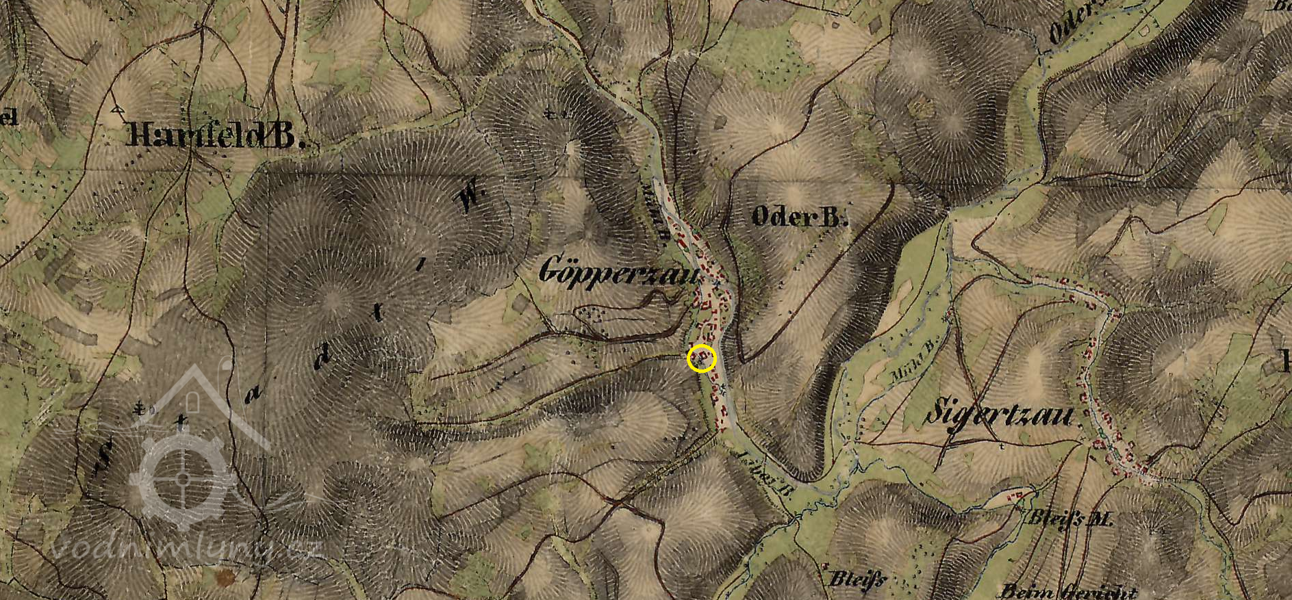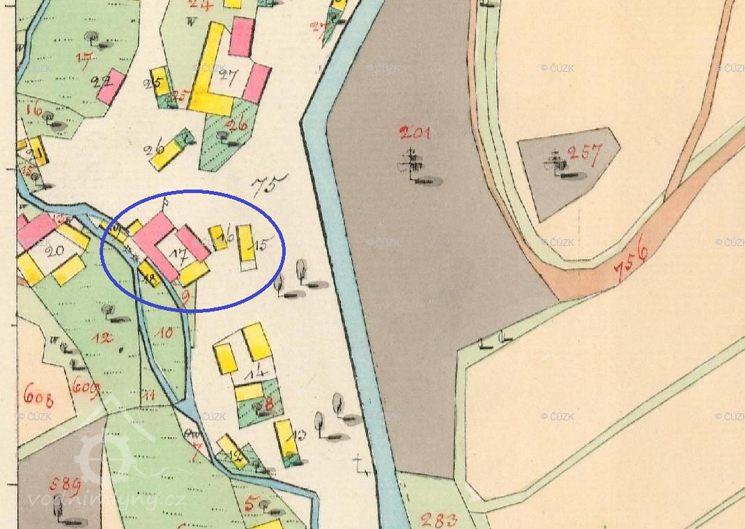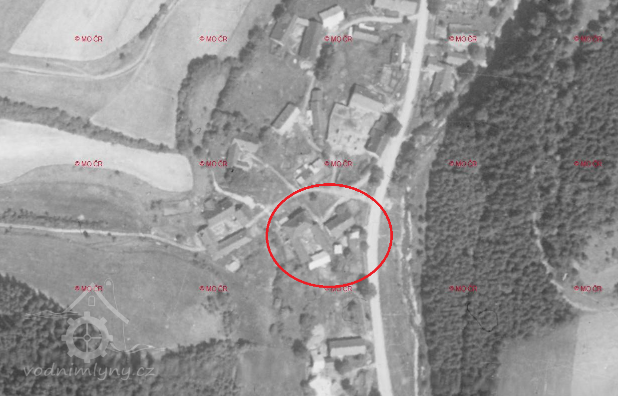 Popis1930: 1 vodní kolo na svrchní vodu, hltnost 0,15 m3/, spád 3,7 m, výkon 4,8 HP