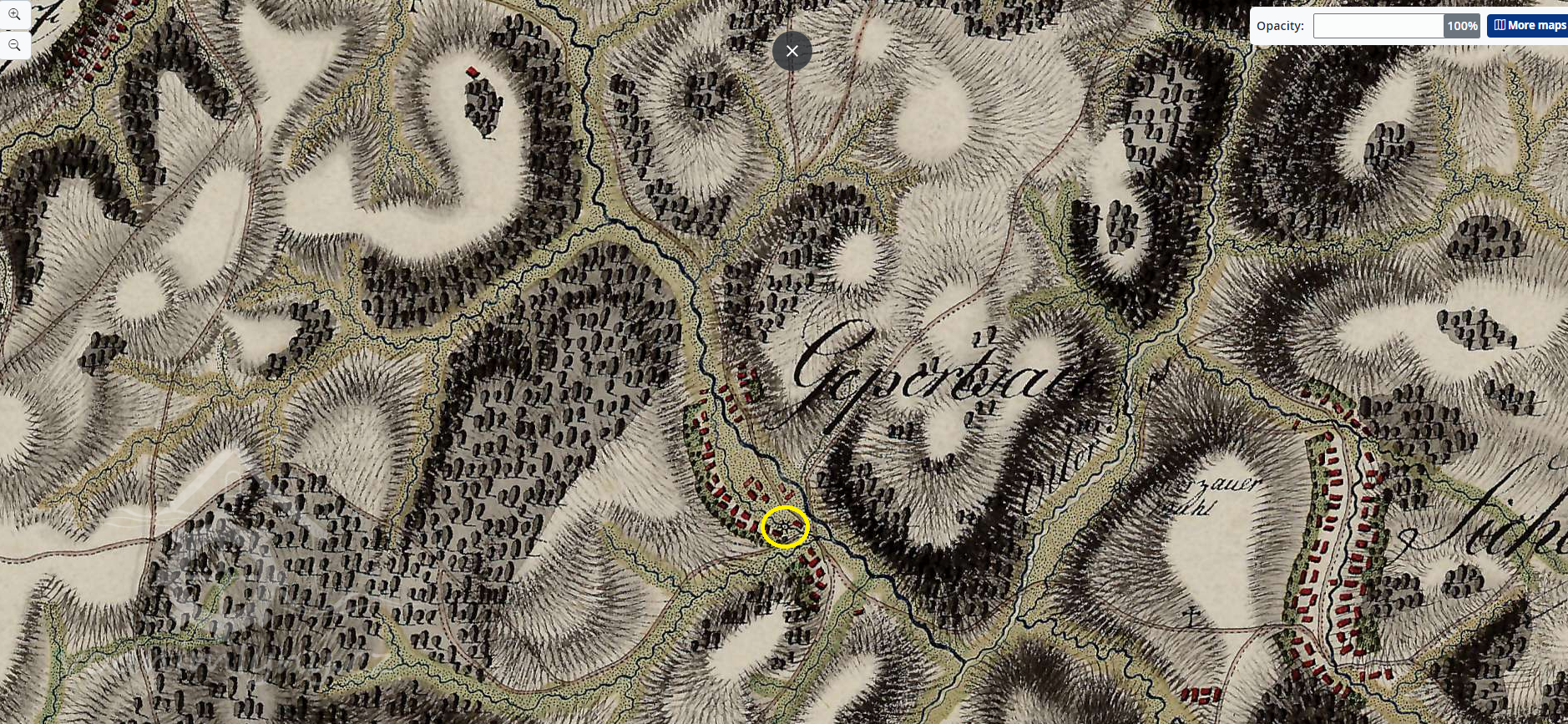 Zaniklý mlýn (1930 šrotovník) v obci Údolné (Keprtovicích), zlikvidované v rámci vojenského újezdu Libavá.