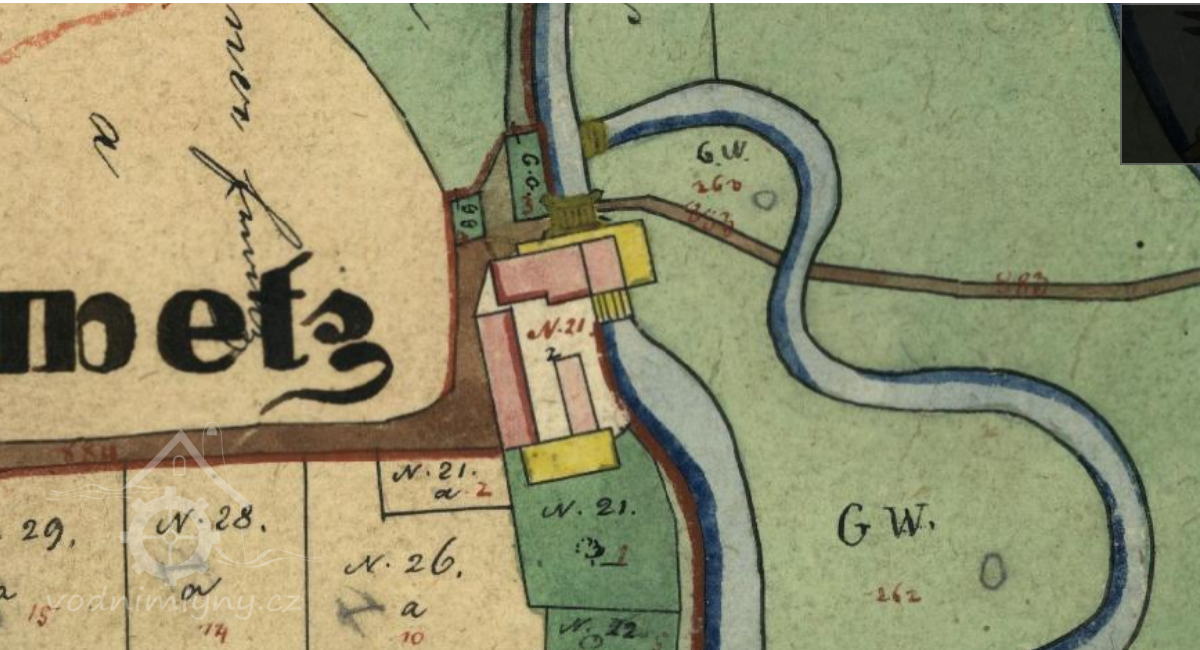 Mlýn je zachycen již na mapě I. voj. mapování.