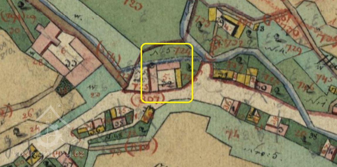 Popis1930: 1 kolo na svrchní vodu, hltnost 0,073 m3/s, spád 8,1 m, výkon 4,7 HP
