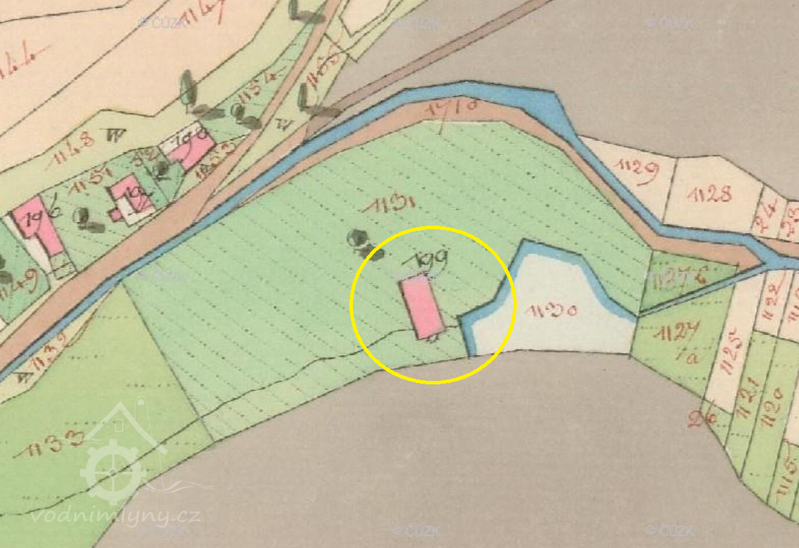 Popis1930: 1 kolo na svrchní vodu, hltnost 0,09 m3/s, spád 5 m, výkon 3,9 HP
