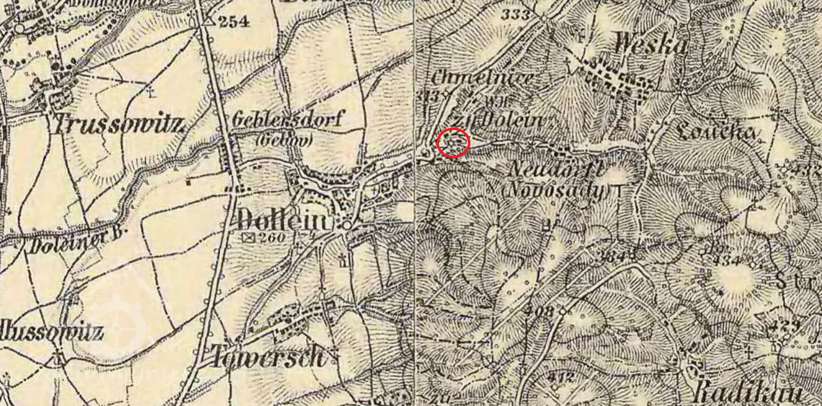 1,25 km sv od kostela sv. Matouše v Dolanech