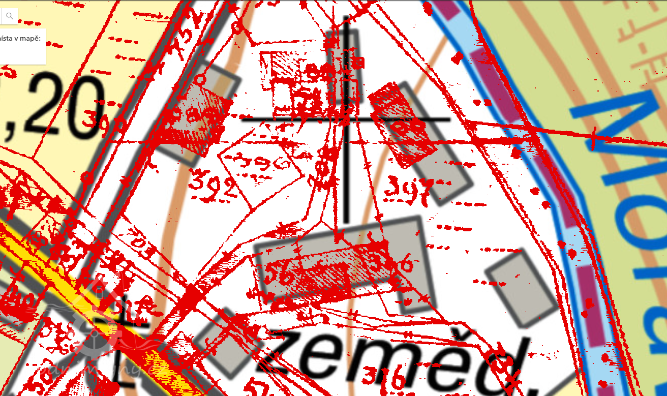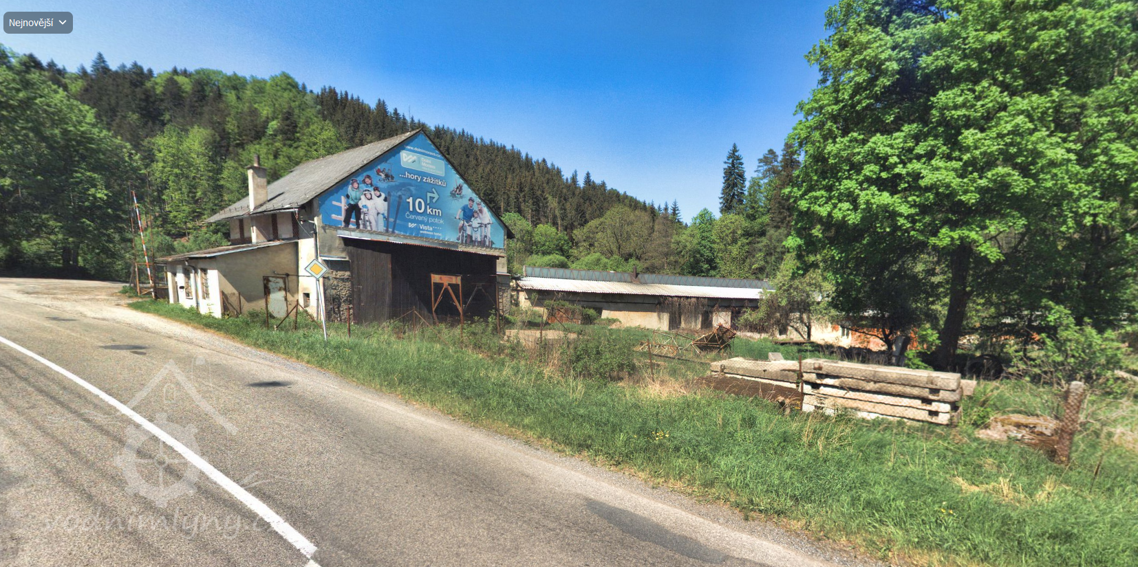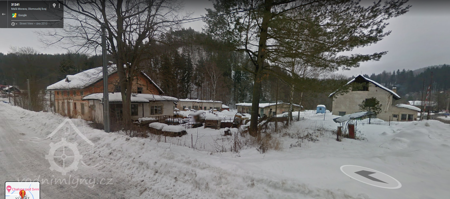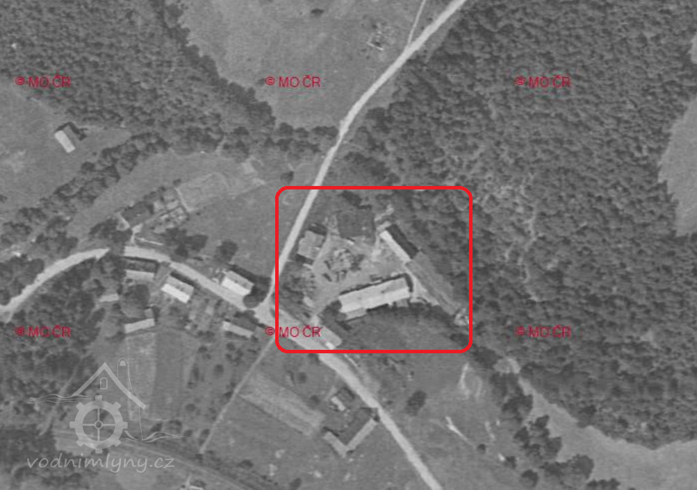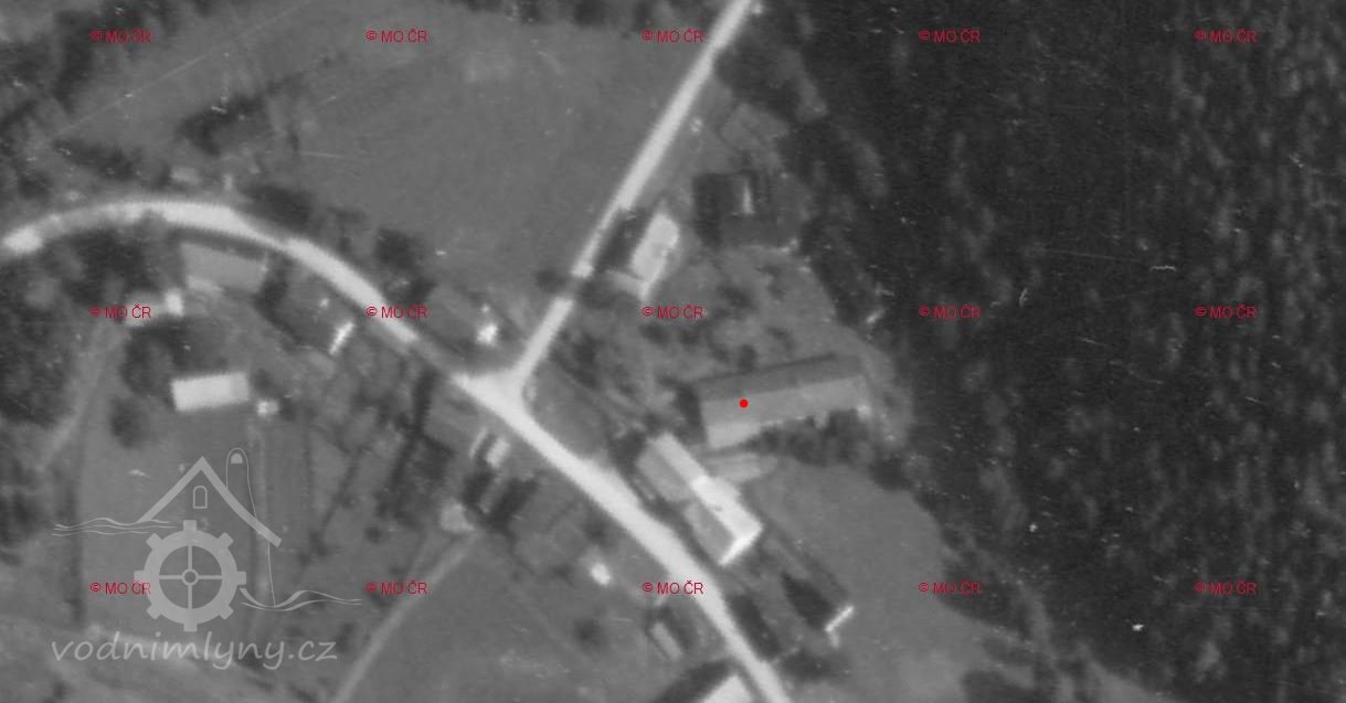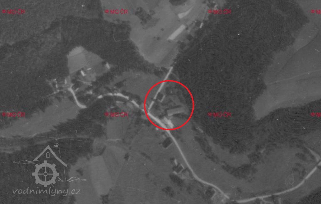 Zaniklý mlýn na horním toku Moravy, 1930 pohon hospodářských strojů, dnes na místě hospodářský areál.