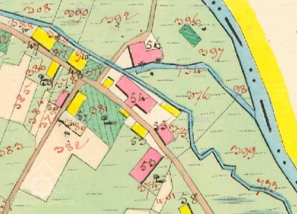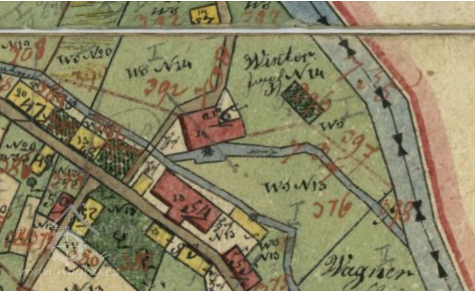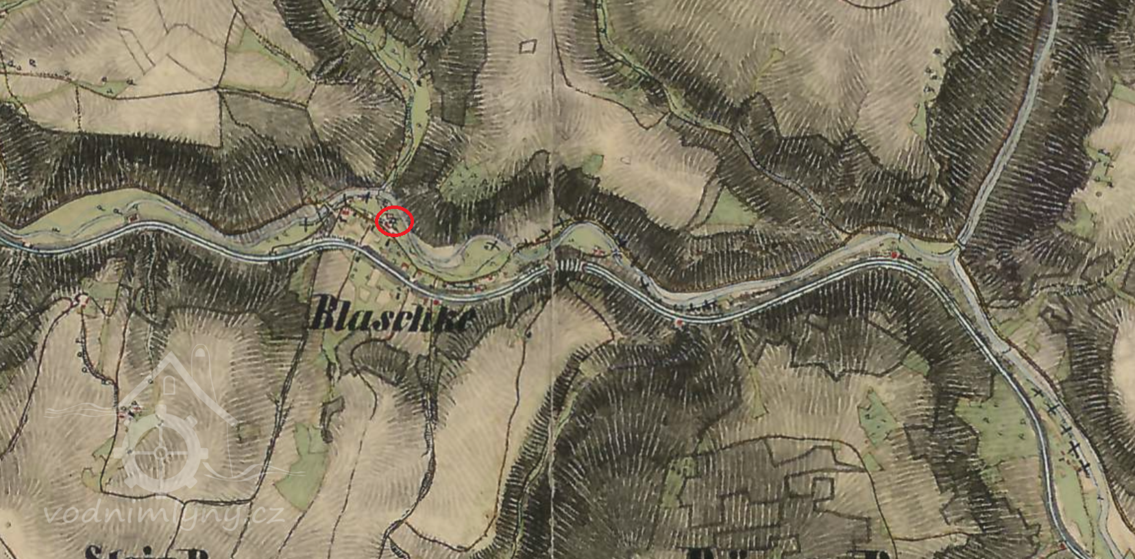 Popis1930: 1 kolo na svrchní vodu, hltnost 0,078 m3/s, spád 3,2 m, výkon 2,1 HP