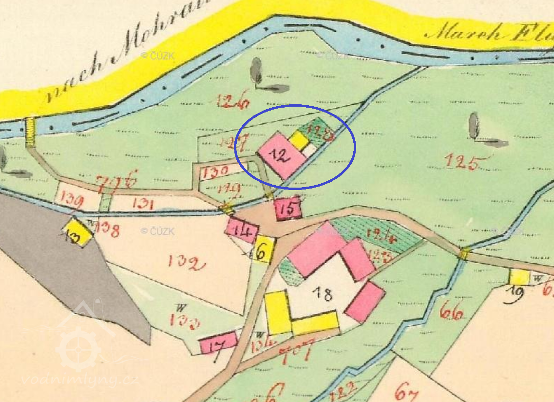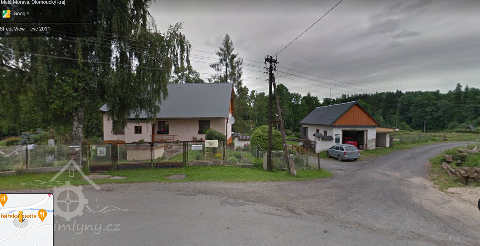 Zaniklý menší mlýn na náhonu z Moravy. 1930 šindelka a elektrárna, dnes buď zcela přestavěn nebo znova postaven na původních základech slouží jako kancelář a ubytovna Pstruhařství ČRS.