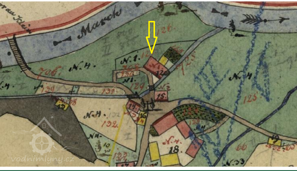 Popis1930: 1 kolo na svrchní vodu, hltnost 0,22 m3/s, spád 5 m, výkon 9,5 HP