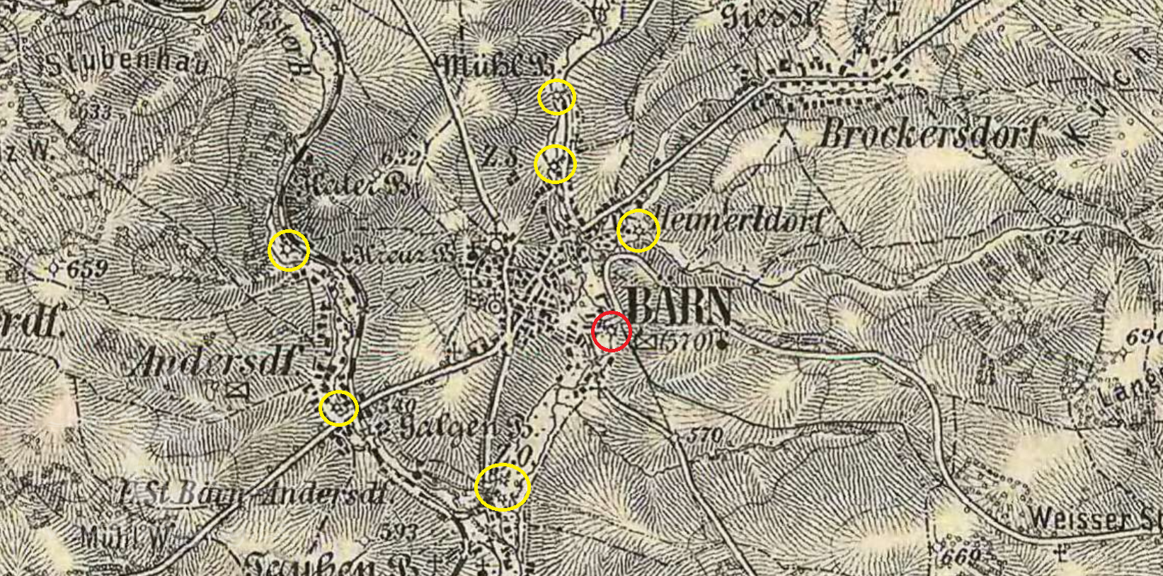 800 m východně od kostela Nanebevzetí P.Marie v Moravském Berouně