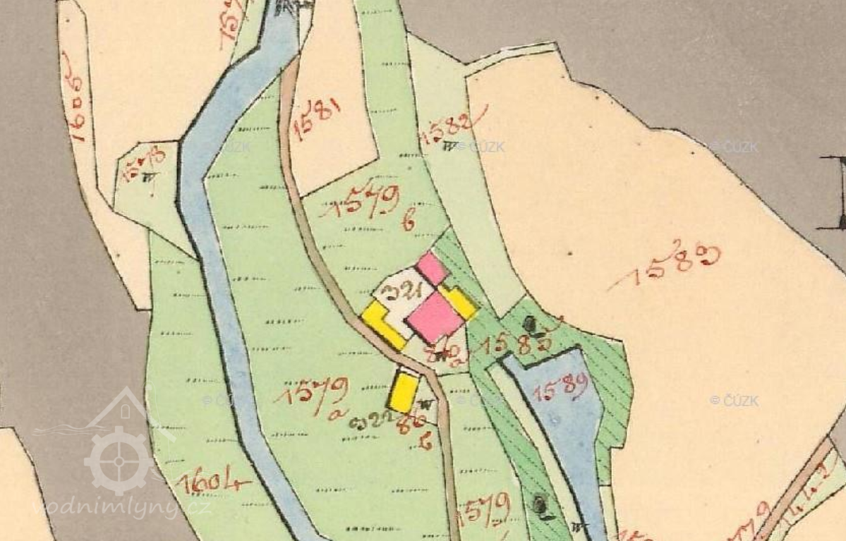 Popis1930: 1 kolo na svrchní vodu, hltnost 0,051 m3/s, spád 6,65 m, výkon 2,9 HP